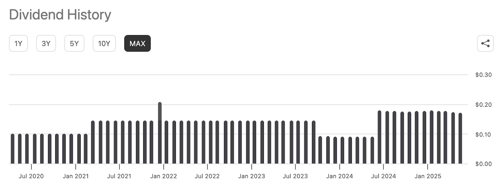 BMEZ maintains a monthly managed distribution policy that currently pays 12% of net assets annually. The trailing 12-month yield is above this level due to share price changes, but investors should expect a rate of 12% going forward.