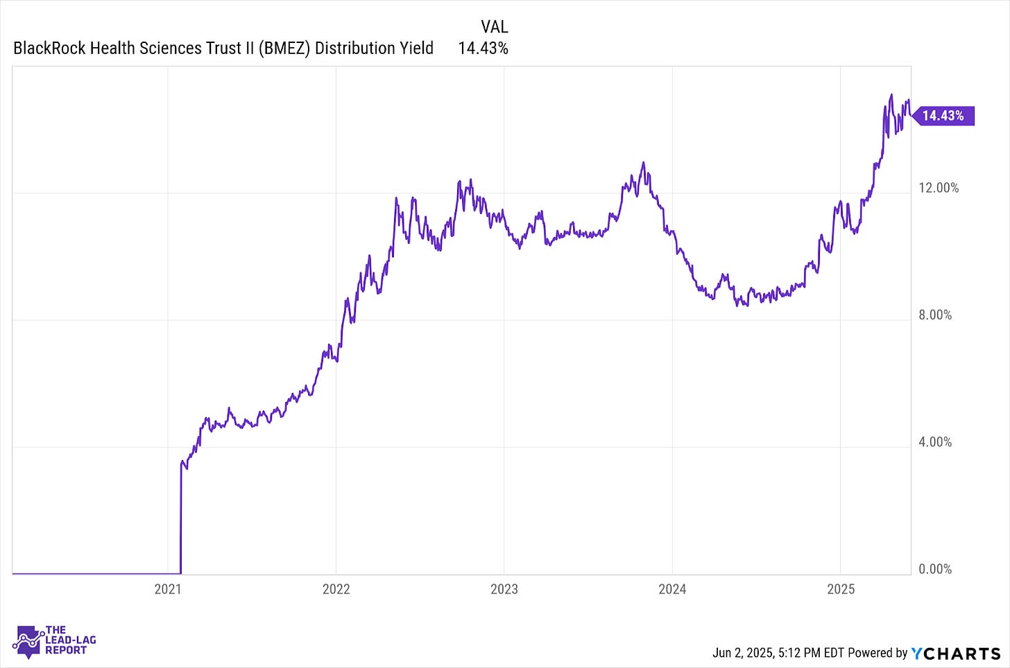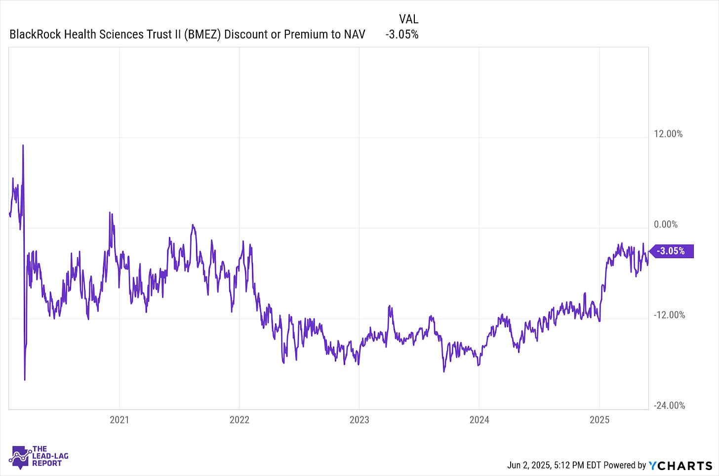 BMEZ’s discount to NAV began closing around the time the fund switched to a 12% managed distribution policy. High yields usually attract more income seekers, which often leads to narrower discounts. These kinds of double digit managed yields usually lead to NAV decay, so I’m not sure this is a better outcome overall.