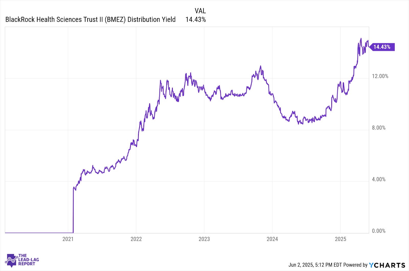 Managed distribution programs are great for predictability, but it usually comes down to the distribution rate. For healthcare stocks, 12% seems awfully if it needs to be backed by income and capital gains. BMEZ was being targeted by noted activist firm Saba Capital and I suspect the new policy was established to help shrink the discount and make it less attractive. Either way, I see the high potential for NAV degradation over time due to the unsustainability.