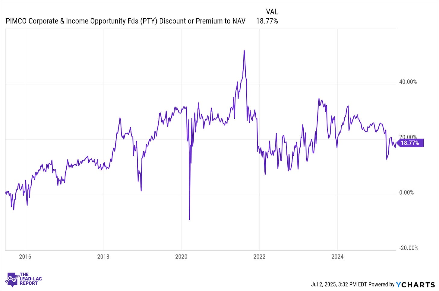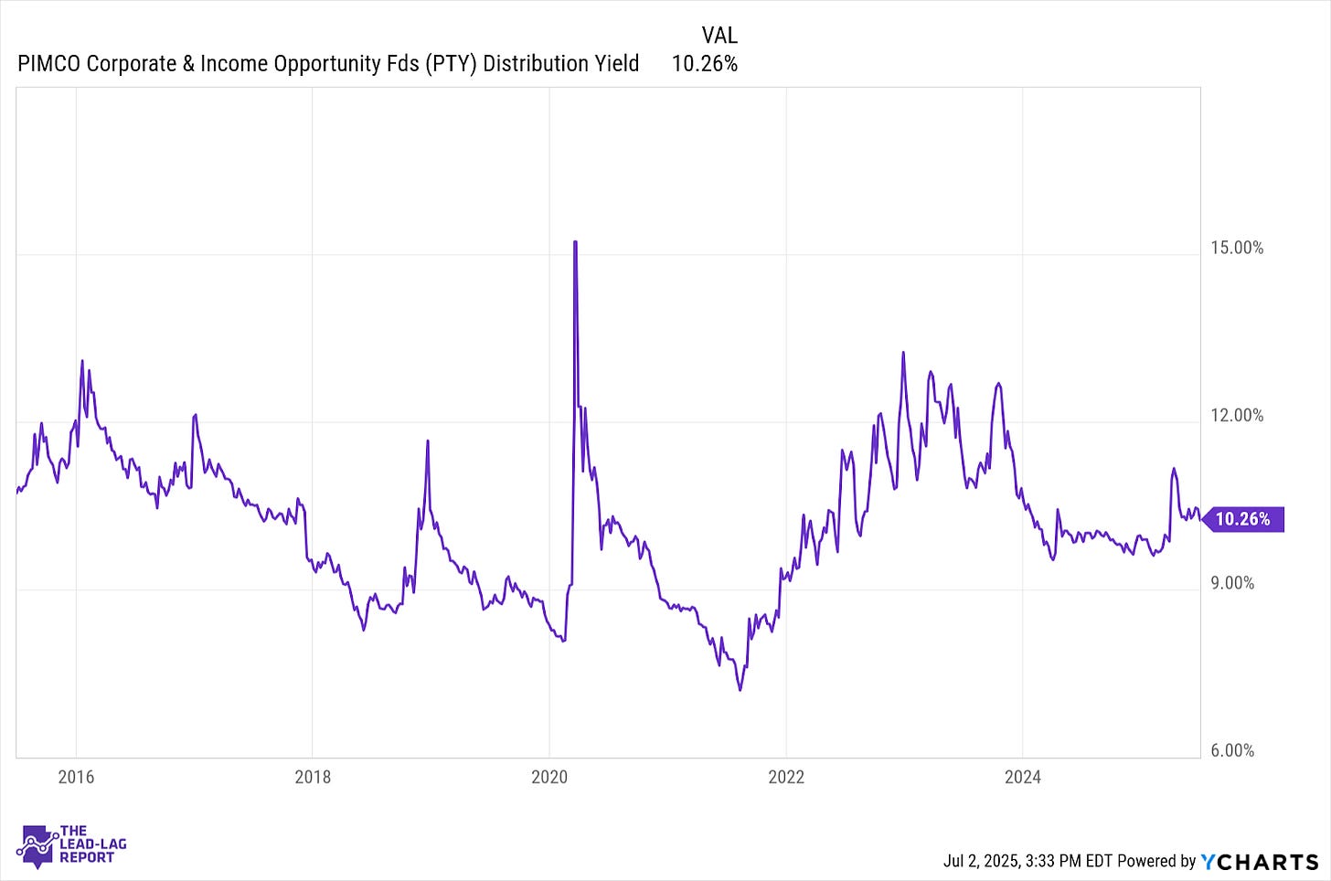 One of the largest closed-end credit funds out there is the PIMCO Corporate & Income Opportunity Fund (PTY). It’s more of an all-credit portfolio in that it owns corporates, both investment-grade and junk, senior loans, agency bonds and asset-backed securities. It’s been popular among investors for its mix, but also its yield, which has routinely hovered north of 10%. But it also trades at a significant premium above its NAV. Many investors don’t like paying above market prices for their investments and PTY is a good test case for whether the value is worth the cost.