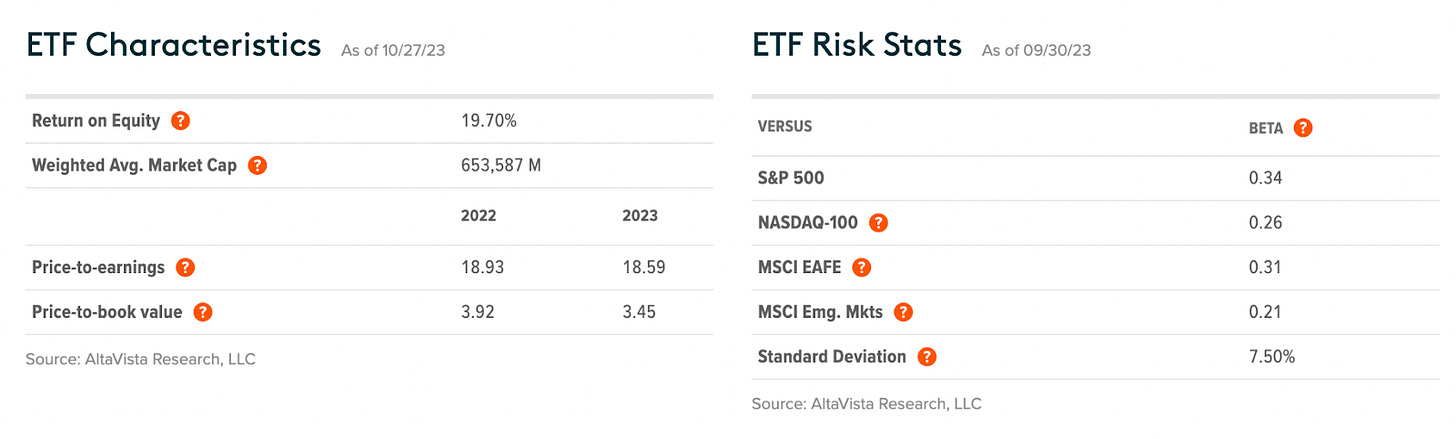 There’s no reason to discuss the S&P 500 itself since everybody knows what this is, but I will throw up some of the current risk metrics and valuation ratios for this ETF.