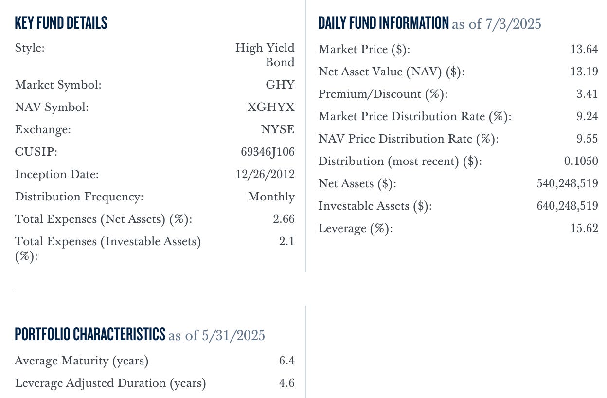GHY seeks to provide a high level of current income by investing primarily in below investment-grade fixed income instruments of issuers located around the world, including emerging markets. The fund also uses leverage to enhance yield and total return potential.