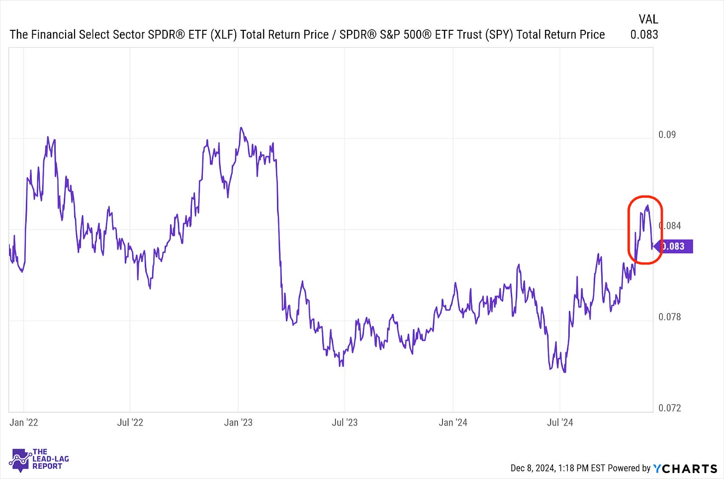 The more direct Trump trade winners of recent weeks took a major step back last week. Given recent outperformance, they were probably due for a short-term pause, but I think the long-term case here remains intact. Plans to deregulate all across the U.S. economy should open up the operating environment for many sectors, but especially this one. With M&A and investment banking activity starting to rebound, this could be a strong year in 2025.