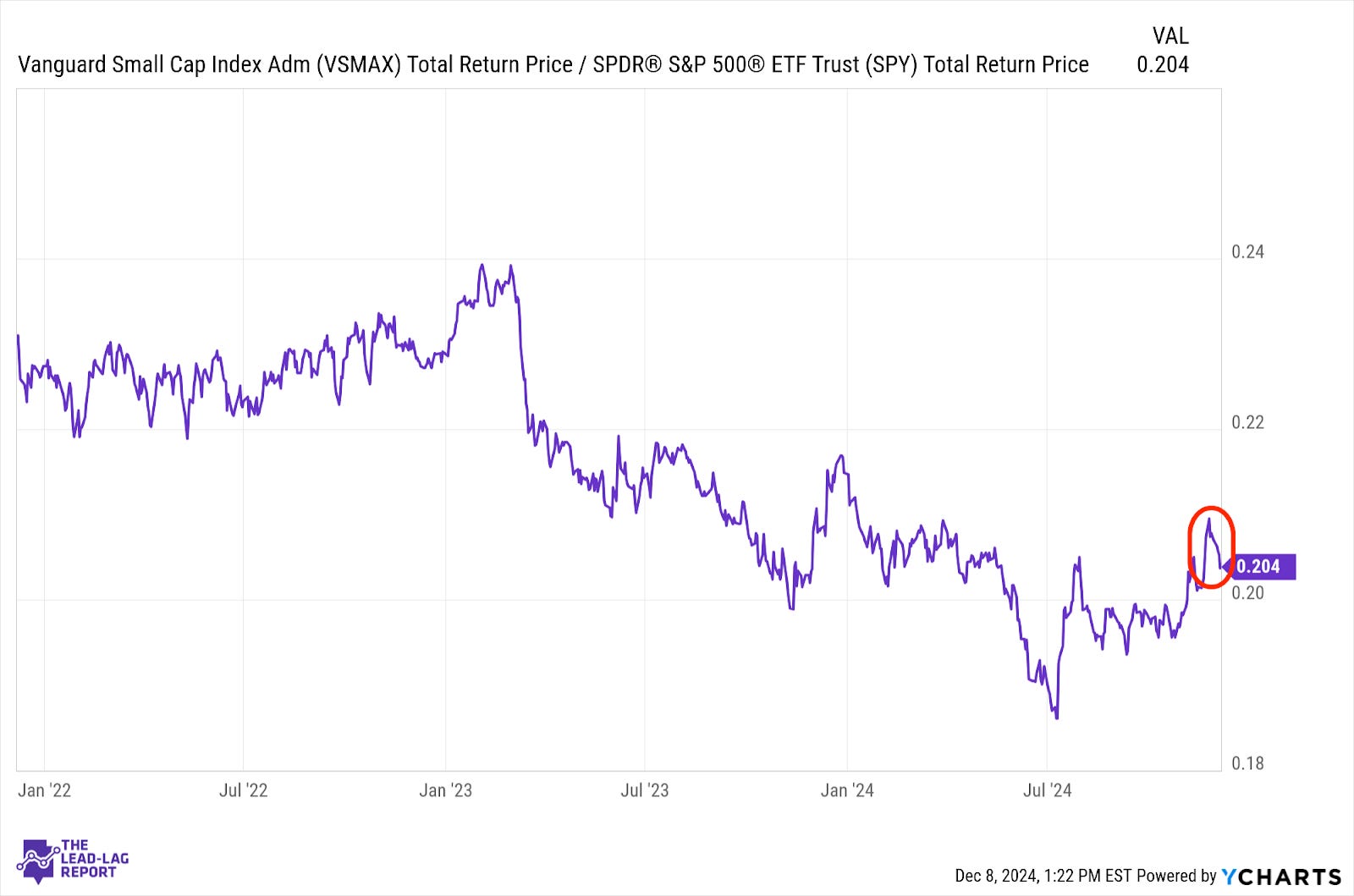 Small-caps continue trading on their value characteristics, not their growth ones. That means we’ve seen this sector lag whenever tech and the S&P 500 have been gaining. In that sense, they could actually hold up well in a downturn similar to how they did in 2022, but are likely to struggle as long as cyclicals are struggling.