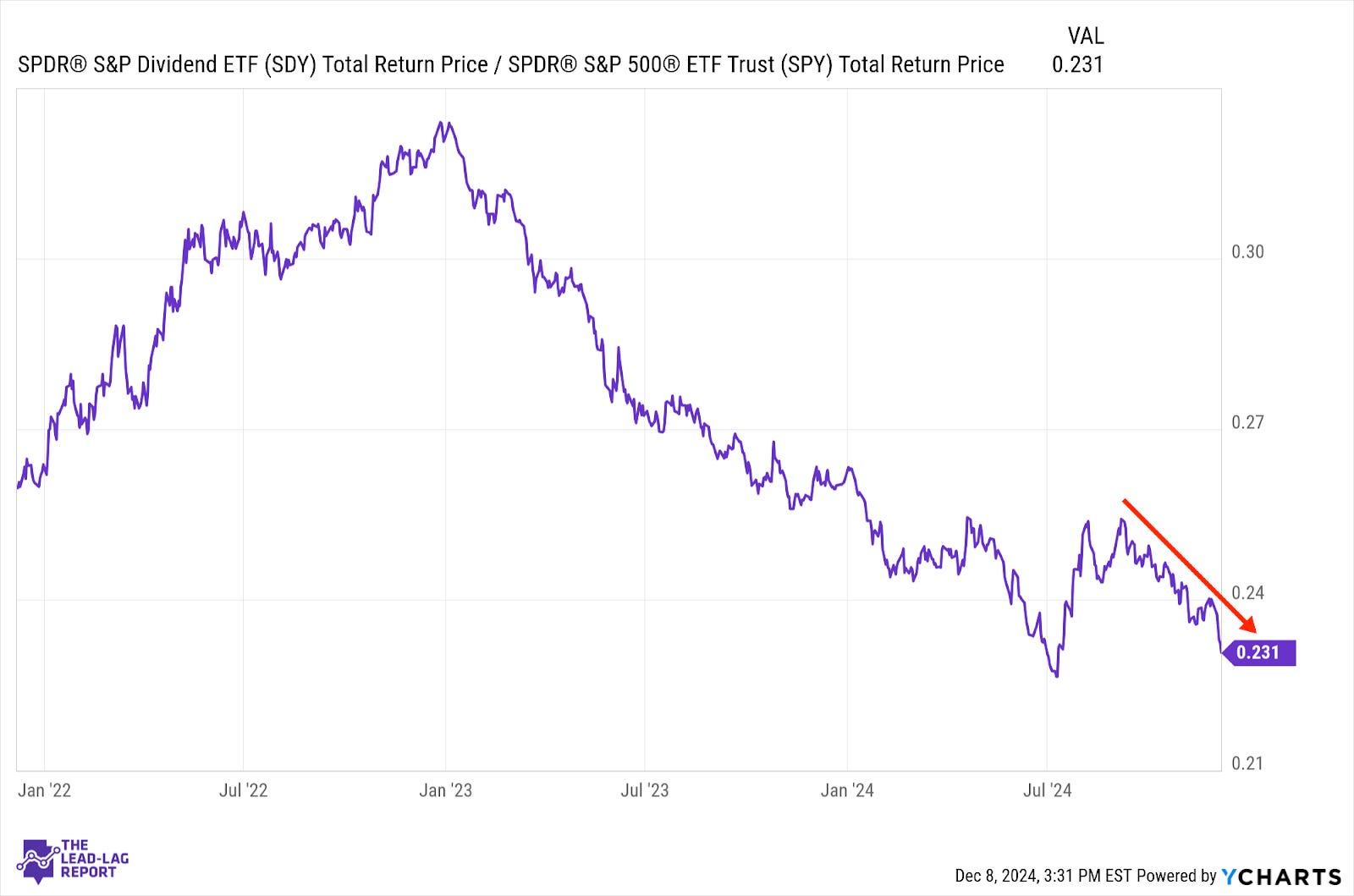 With continued lagging behavior from defensive stocks and a sharp reversal in cyclicals, dividend stocks had almost no chance last week. The only real chance I see for an immediate upside catalyst is a surprise from the BoJ that turns sentiment negative. Absent that, seasonality and a general optimistic outlook for the U.S. economy could carry this downtrend into 2025.