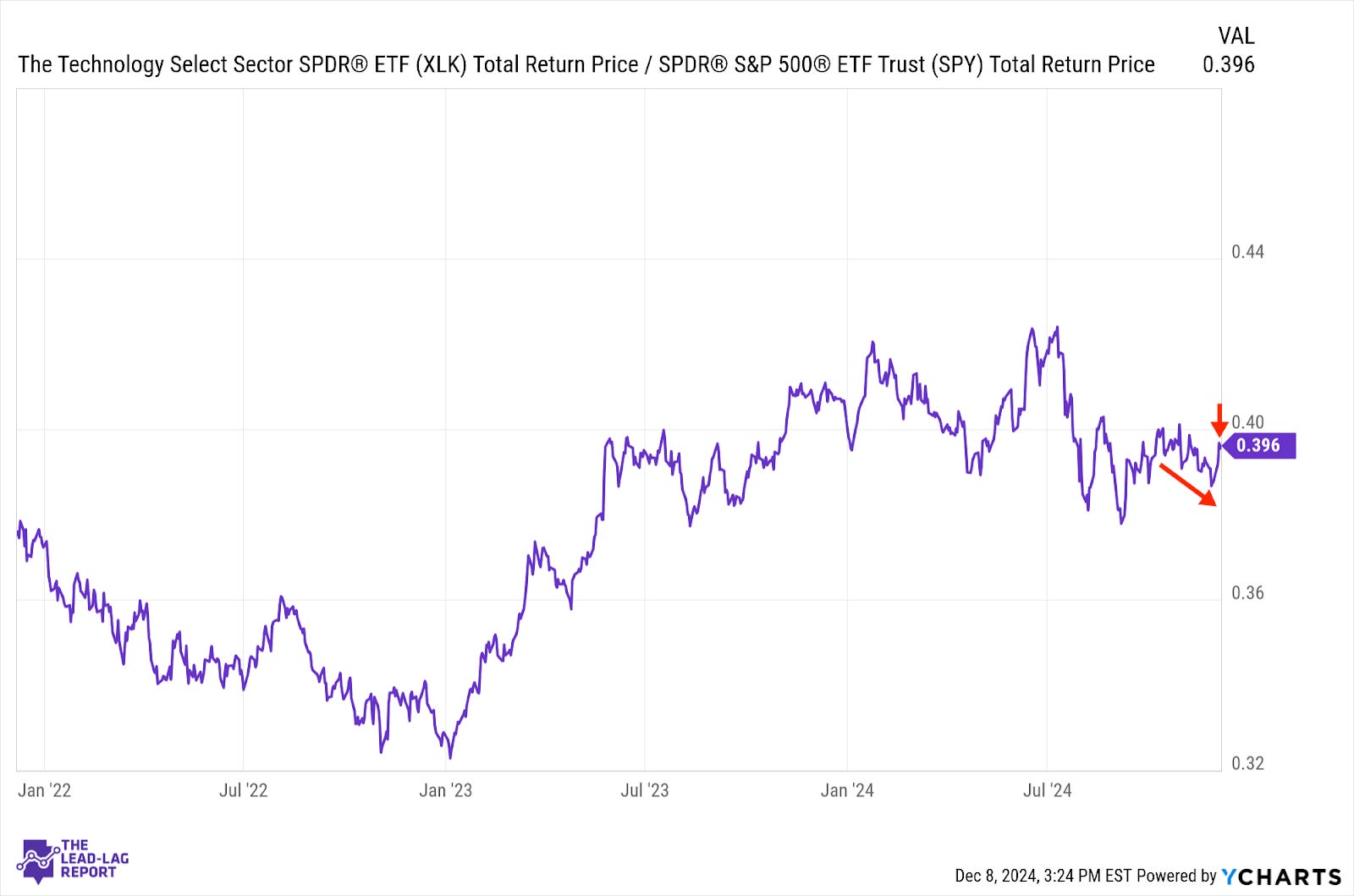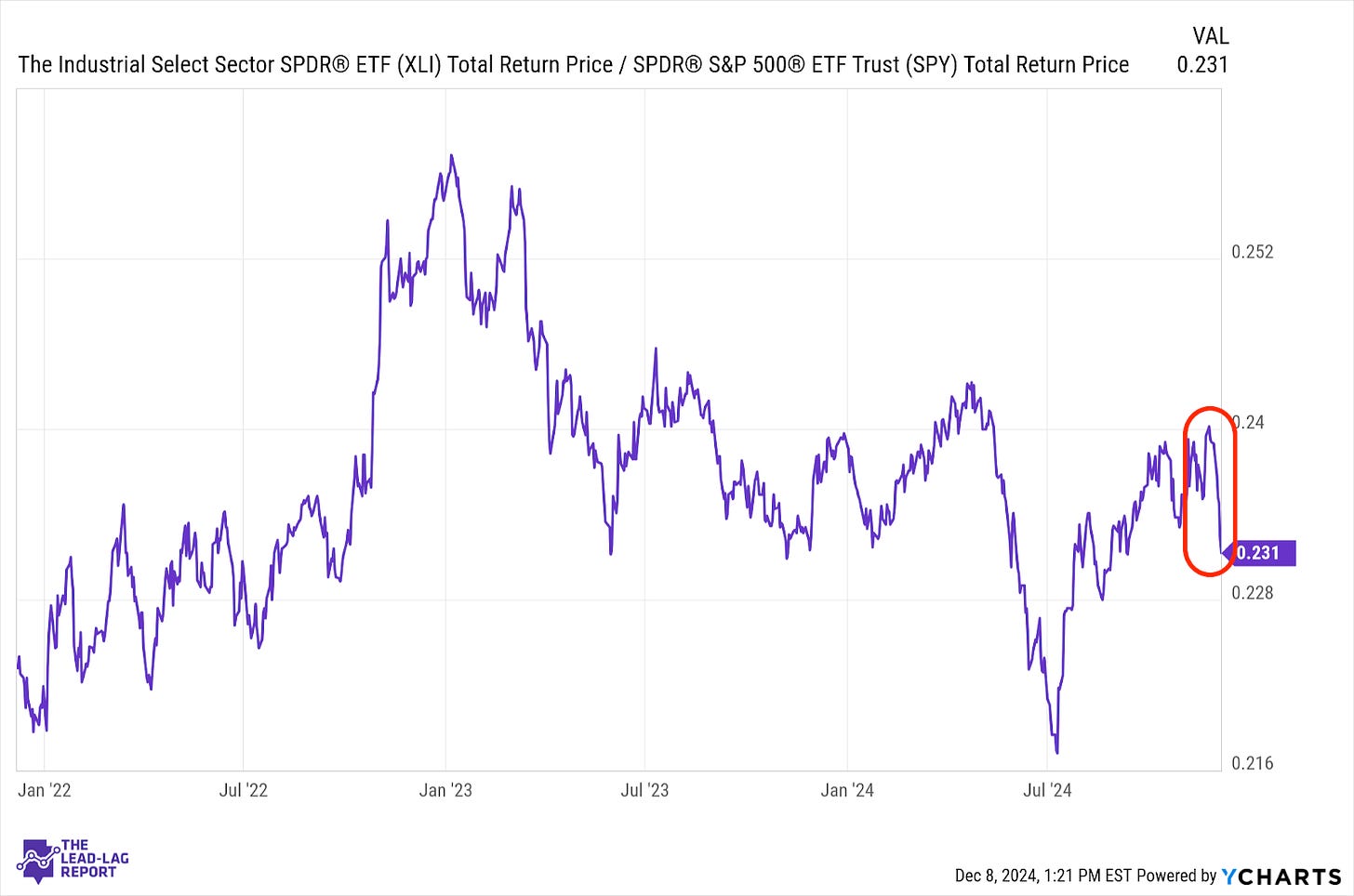 The post-election breakout continues for this sector. The market shifted in a big way towards growth stocks this past week, which could indicate interest consolidating around this theme. This has been a relatively broad rally, not just one driven by the mega-cap names, and that could be a good sign for sustainability.