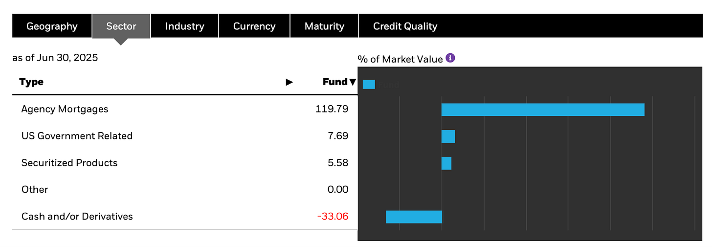 The degree of leverage used by BKT pushes the agency bond exposure well above 120%. Again, nothing terribly unusual. The majority of the fund’s holdings are FNMA bonds, but there’s notable exposures to the traditional FHLMC and GNMA securities as well.