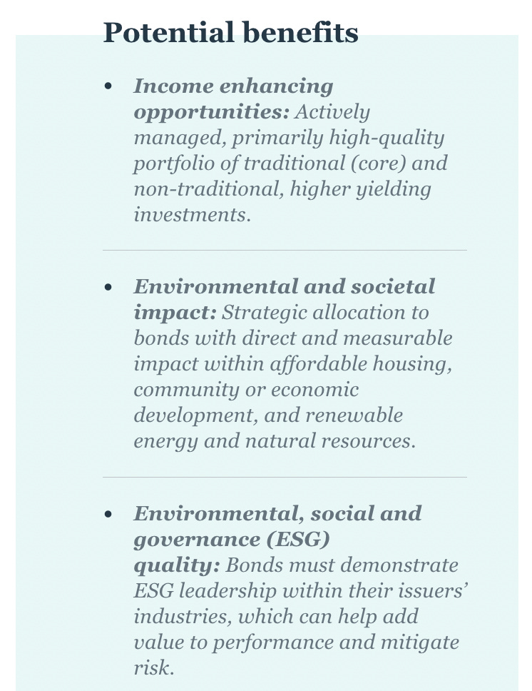 NPCT seeks total return through high current income and capital appreciation, investing primarily in fixed income investments while giving special consideration to certain impact and environmental, social and governance (ESG) criteria. It may invest up to 50% of managed assets in below investment-grade investments, but no more than 10% in investments rated CCC or lower at the time of investment. The fund can invest without limitation in investments of foreign issuers, with no more than 30% of managed assets going to emerging market countries. NPCT also uses leverage to enhance yield and total return potential.