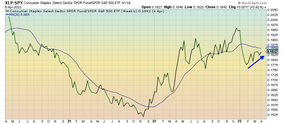 Consumer staples continue to trend higher, confirming the pattern we’re seeing across a number of traditionally defensive asset classes.