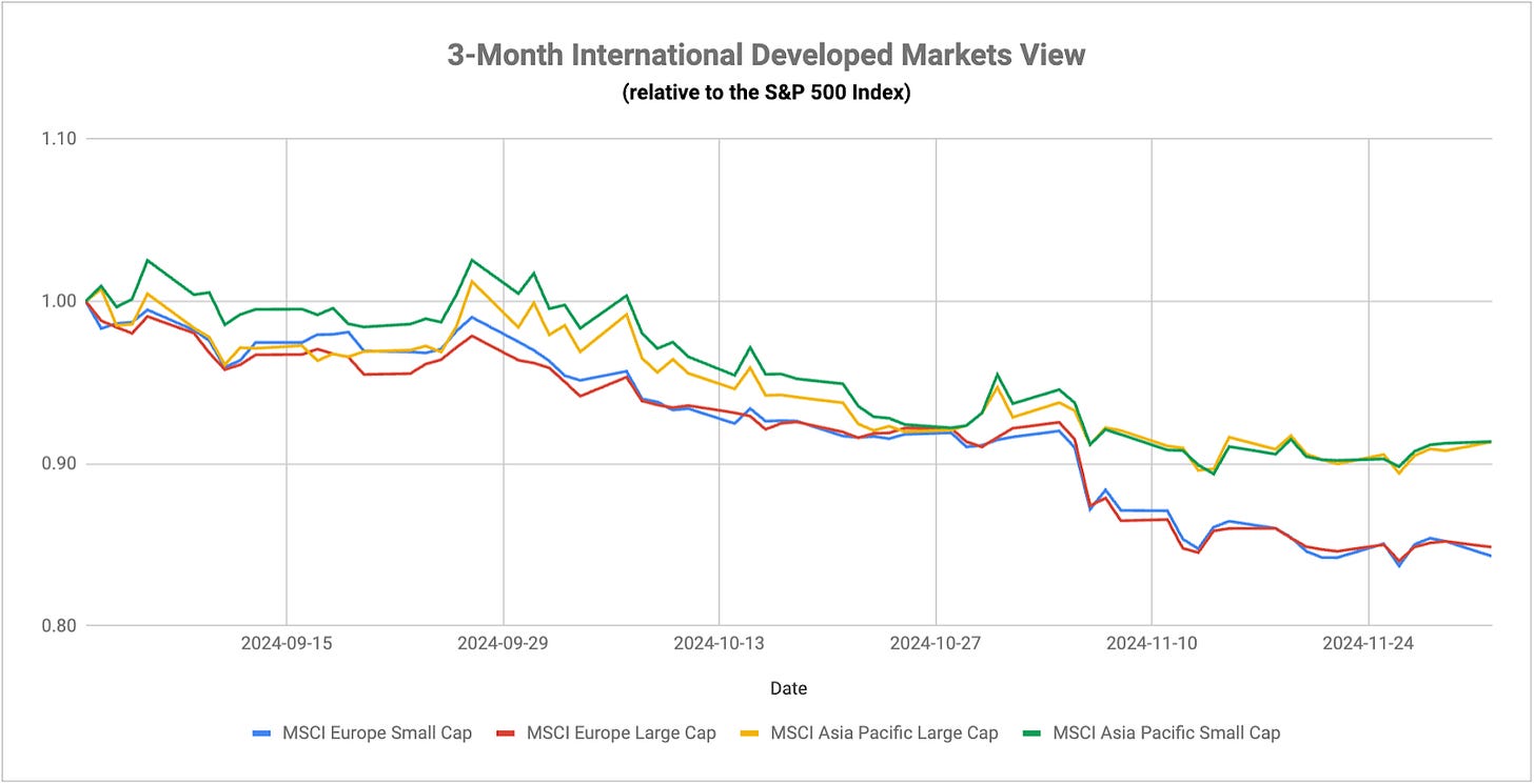 From an equity perspective, the defensive shift that we’ve seen over the past couple weeks looks like it’s having trouble holding on. The positive data that we continue to see just hasn’t been conducive to risk-off assets gaining any sustainable momentum. The most likely catalyst to potentially reverse this would be around the December 19th BoJ where an unexpectedly hawkish stance could reignite the reverse carry trade unwind and send equities lower like it did earlier this year.