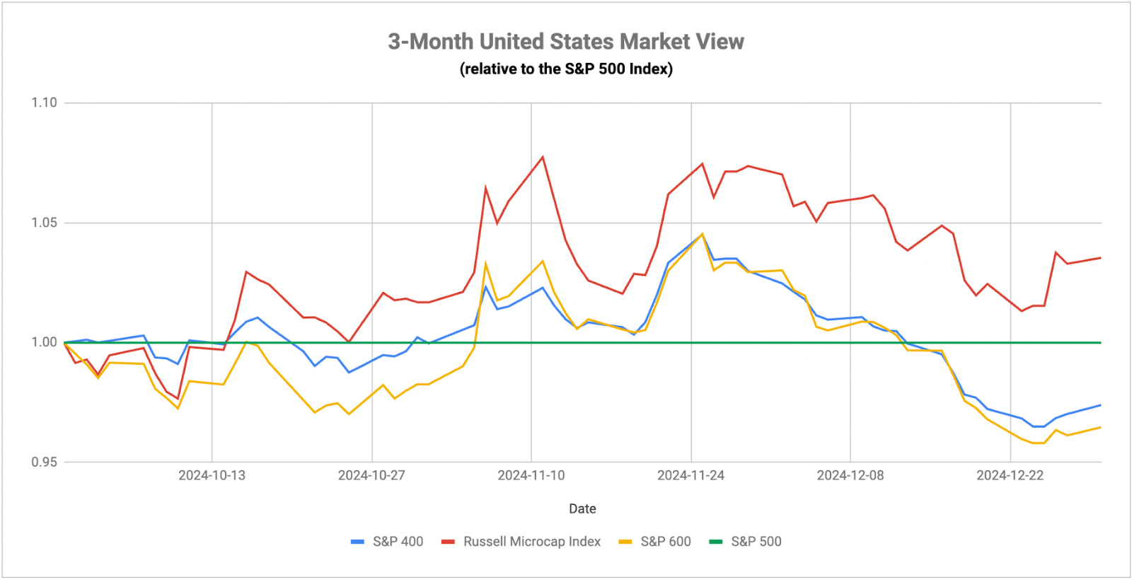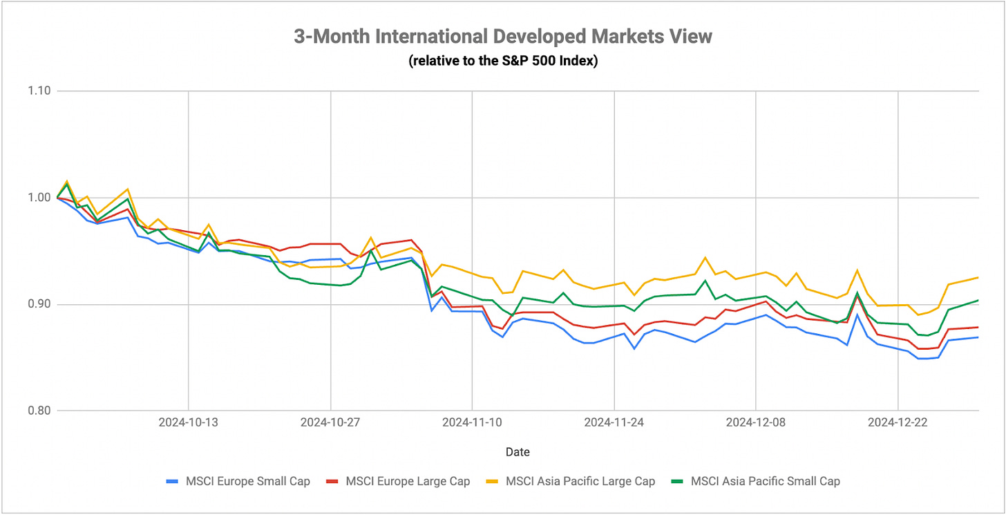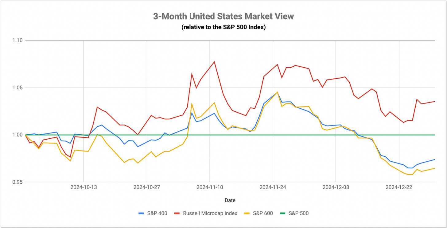 I still believe that inflation is going to be a primary theme for at least the first of 2025 as we see how the Trump administration handles foreign policy, particularly as it relates to tariffs and trade. I’ve said many times that small-caps hold the key here and I think that’s especially true now given that they’re perhaps the proxy of inflation and rate expectations among U.S. equities. Over the past month, they’ve given us a pretty strong indication that inflation is becoming a problem and the likelihood of higher for longer interest rates is going to start putting the squeeze on these companies. Small-cap value is where a lot of the companies at particularly high risk reside and that group has been lagging all year. Investors seem comfortable using mega-caps as a quasi-safe haven in this market and that trend could continue, but persistently elevated rates and inflation are the keys that could pull equities lower in the coming year.