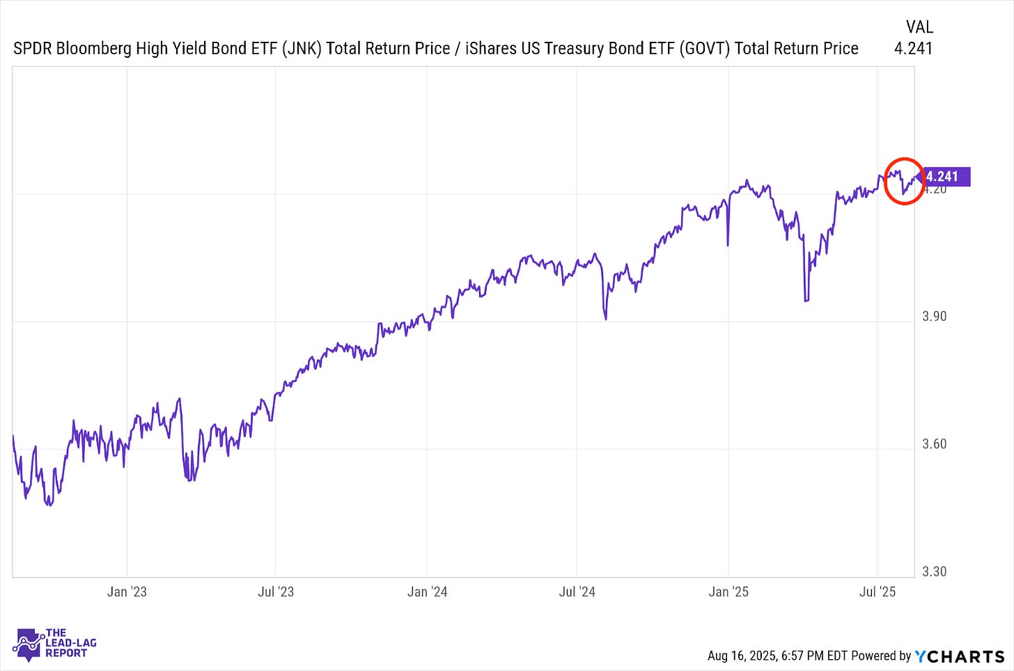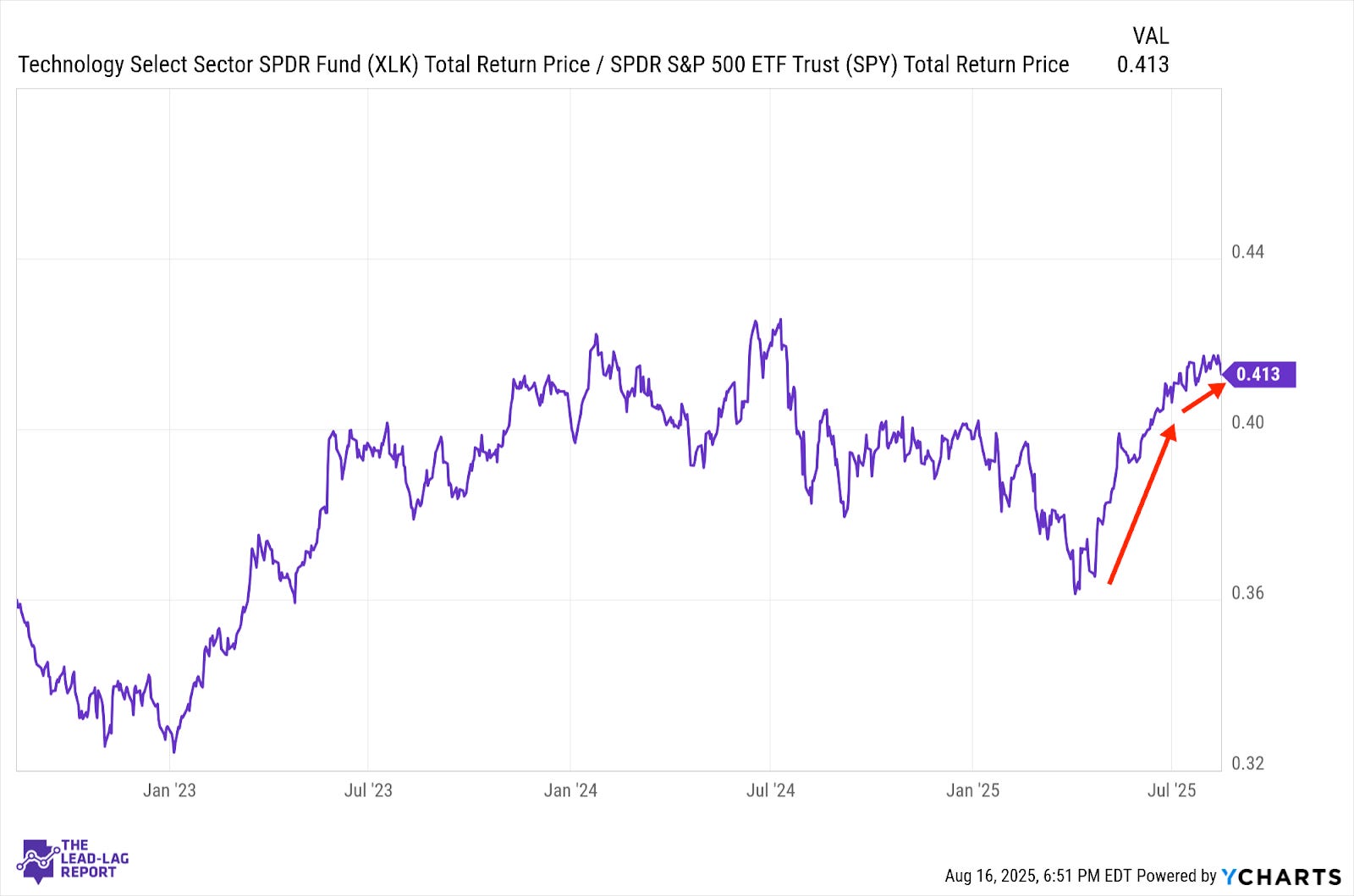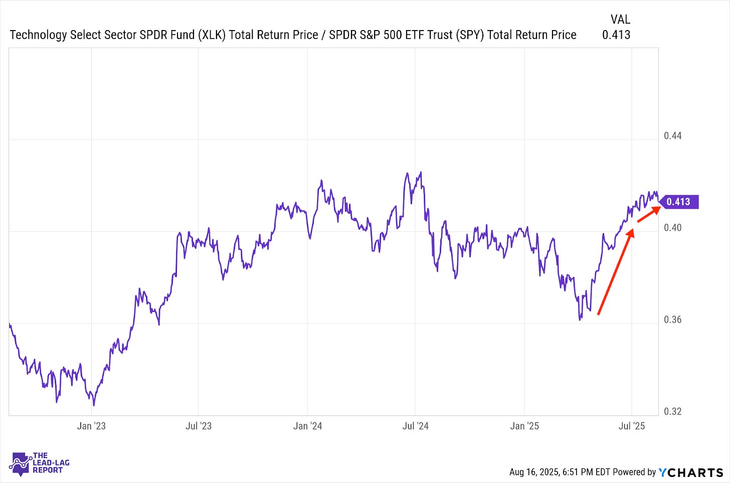 Below is an assessment of the performance of some of the most important sectors and asset classes relative to each other with an interpretation of what underlying market dynamics may be signaling about the future direction of risk-taking by investors. The below charts are all price ratios which show the underlying trend of the numerator relative to the denominator. A rising price ratio means the numerator is outperforming (up more/down less) the denominator. A falling price ratio means underperformance.