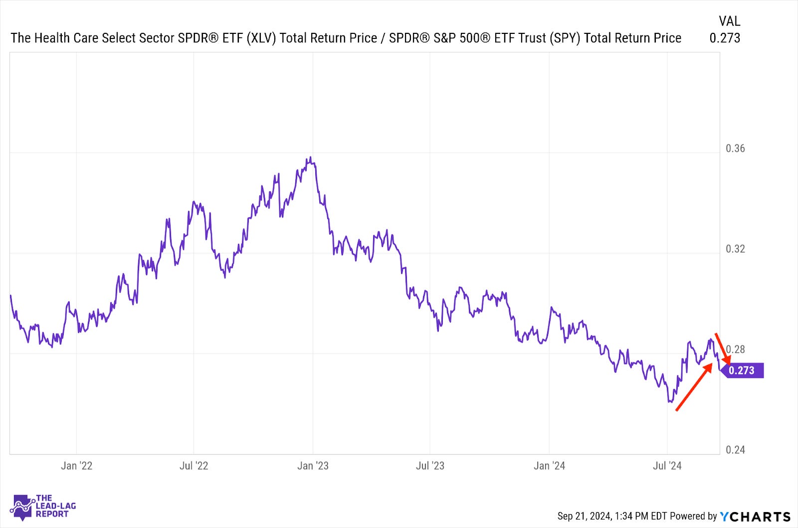 Last week’s oversized rate cut was taken surprisingly well by the markets, which means there wasn’t nearly as much interest in defensive sectors. While the initial reaction was positive, we could very well see some consolidation again in the coming days. Utilities and gold are still strong here, which means sectors like this one could see some lift if underlying risk-off sentiment re-emerges.