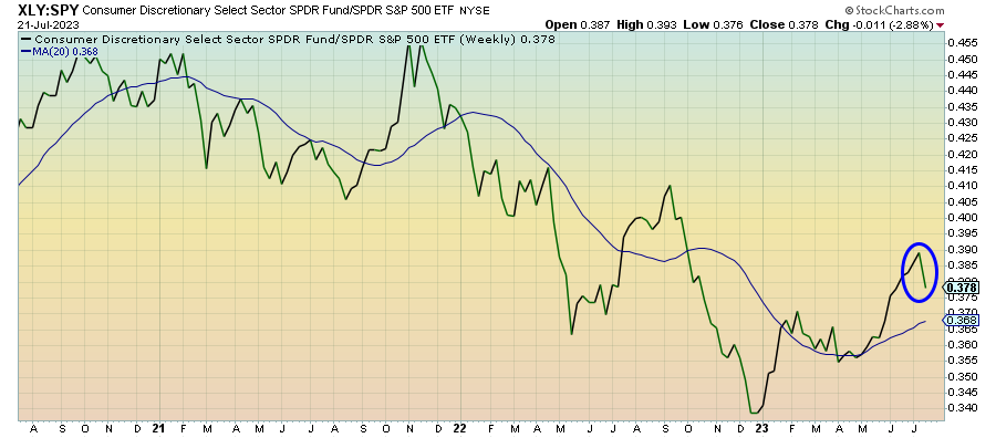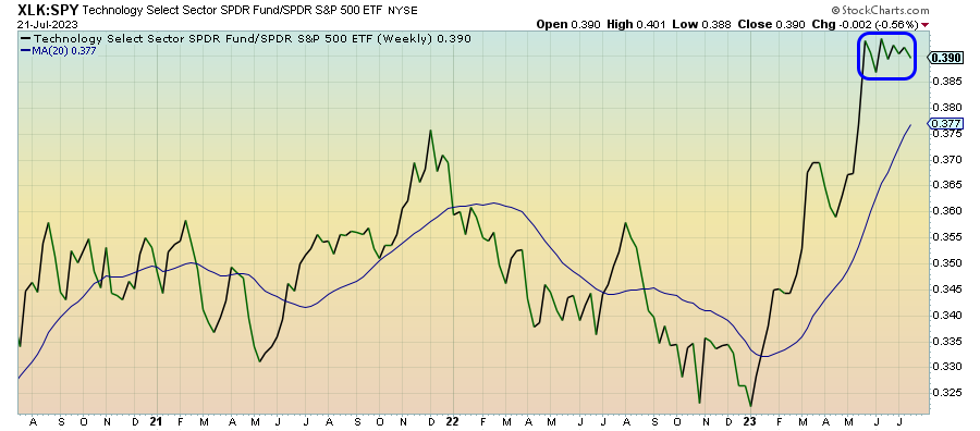 Of all the growth sectors to underperform last week, tech was the one that buckled the least. Where it heads next will likely be the product of how the big mega-caps, including Apple, do on Q2 earnings this week. Given its run-up throughout 2023, this remains the one area of the market likely most vulnerable to any disappointing news.