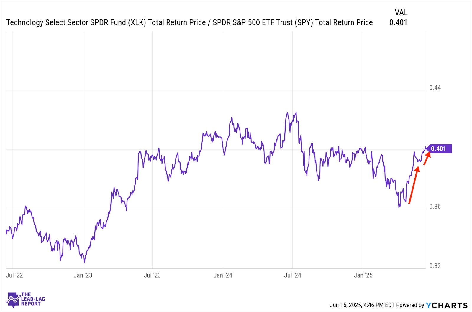 Below is an assessment of the performance of some of the most important sectors and asset classes relative to each other with an interpretation of what underlying market dynamics may be signaling about the future direction of risk-taking by investors. The below charts are all price ratios which show the underlying trend of the numerator relative to the denominator. A rising price ratio means the numerator is outperforming (up more/down less) the denominator. A falling price ratio means underperformance.