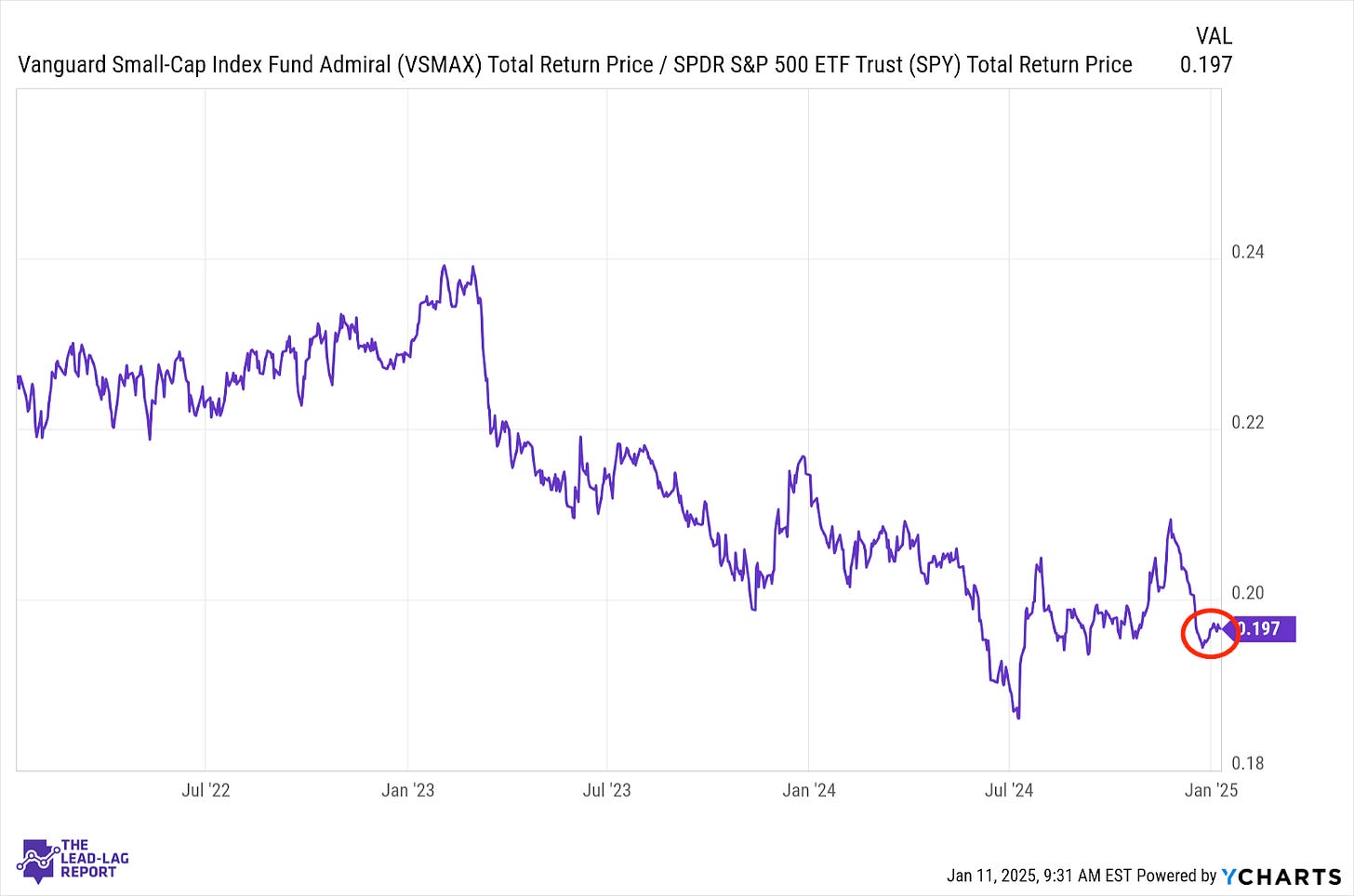Small-caps got a nice little bounce last week, as would be expected in a cyclical revival, but not enough that it should inspire confidence about another leg higher for equities. Cyclicals are the best performing sectors of early 2025 so far, but small-caps are merely matching the S&P 500. I’ve said that small-caps hold the key and right now they’re not suggesting a great deal of confidence.