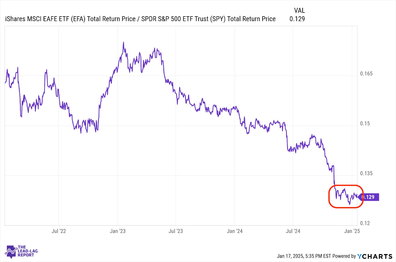 European financials remain quite volatile relative to their U.S. counterparts. That could be expected given how the U.S. economy still looks relatively healthy with little rate cut action expected, while Europe struggles to stay out of recession as the ECB cuts rates multiple times. Europe could easily outperform the U.S. if a rebound looks sustainable, but we still need to see firmer signs of that first.