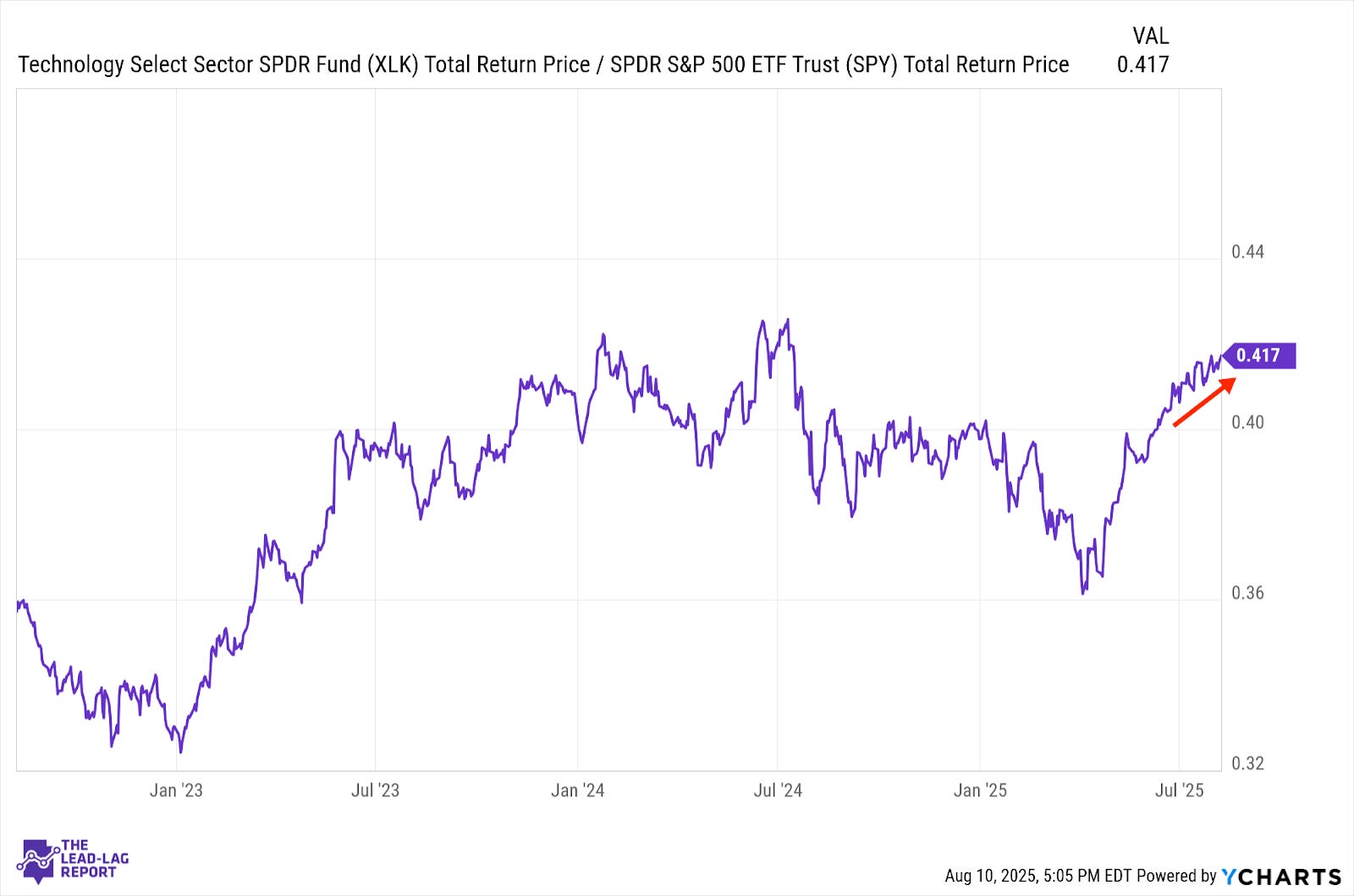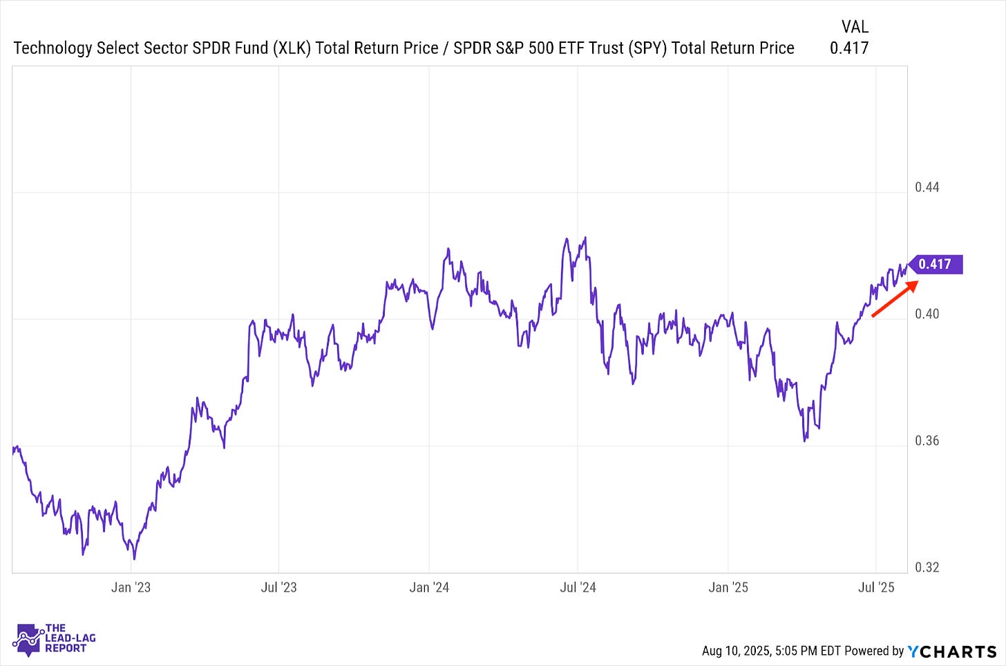 The market has begun pivoting its focus to rate cuts as opposed to the conditions that might necessitate them. Following the earlier non-farm payroll report, the rate cut calendar got pulled forward and that was enough to push investors back into the tech & growth stocks, two groups that often lead in this type of environment. It seems likely that this sector could continue to outperform as long as the focus is on rate cuts.