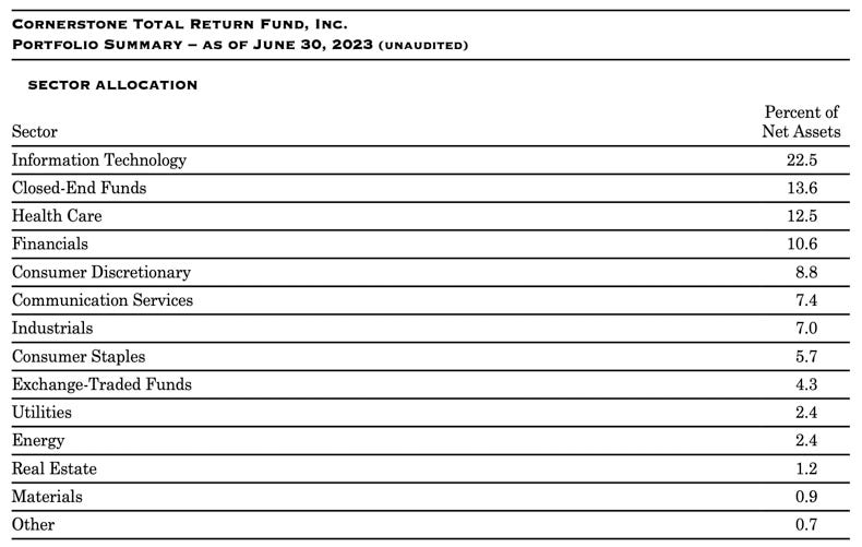 The financial markets just wrapped up their best month of 2023 and the momentum for equities is strong, if not necessarily warranted. Closed-end equity funds certainly enjoyed November as those unrealized capital gains can now potentially be used to fund distributions or shore up existing shortfalls. For the Cornerstone Total Return Fund (CRF), that might be especially welcome news.