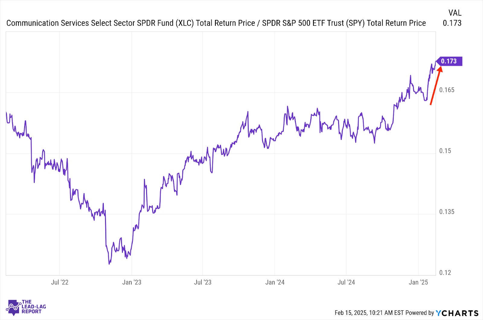 This sector is riding the wave of a 20-day winning streak for Facebook, which has seen that stock rise 20% in the process. It’s not necessarily driving the sector though. Over this time frame, this sector and the equal-weight version of it have produced nearly the same total return, proving that the outperformance has been broad and multiple areas and companies are contributing.