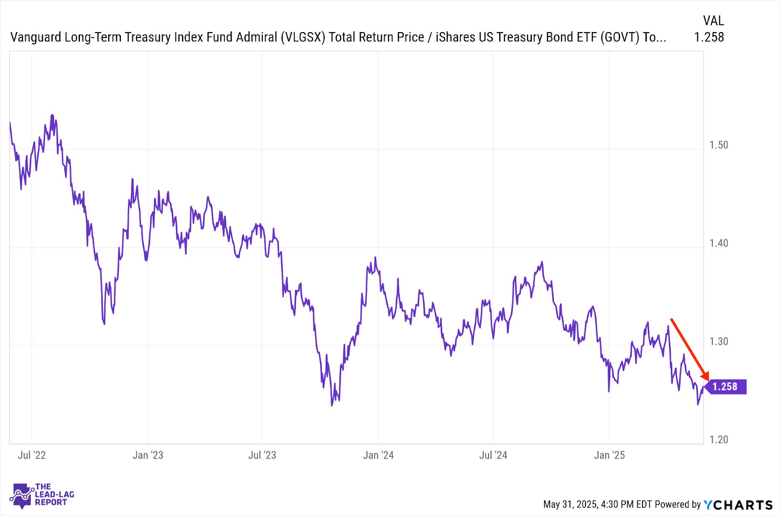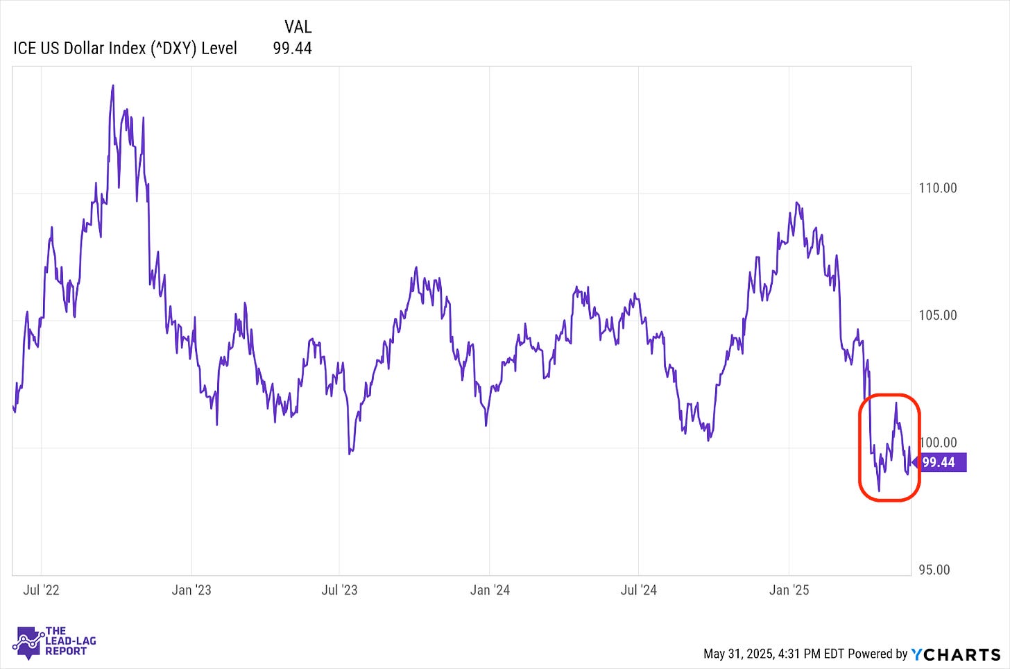 Even with tariff risk seeming to ease here from its most aggressive levels, long-term Treasury yields have yet to follow. Does this mean there’s a structural breakdown at play due to Asian governments dumping Treasuries or some lingering effect from the Moody’s downgrade? It’s certainly possible, but I don’t think we can discount the possibility that Treasuries aren’t being viewed with the same safety as they were even a few months ago.