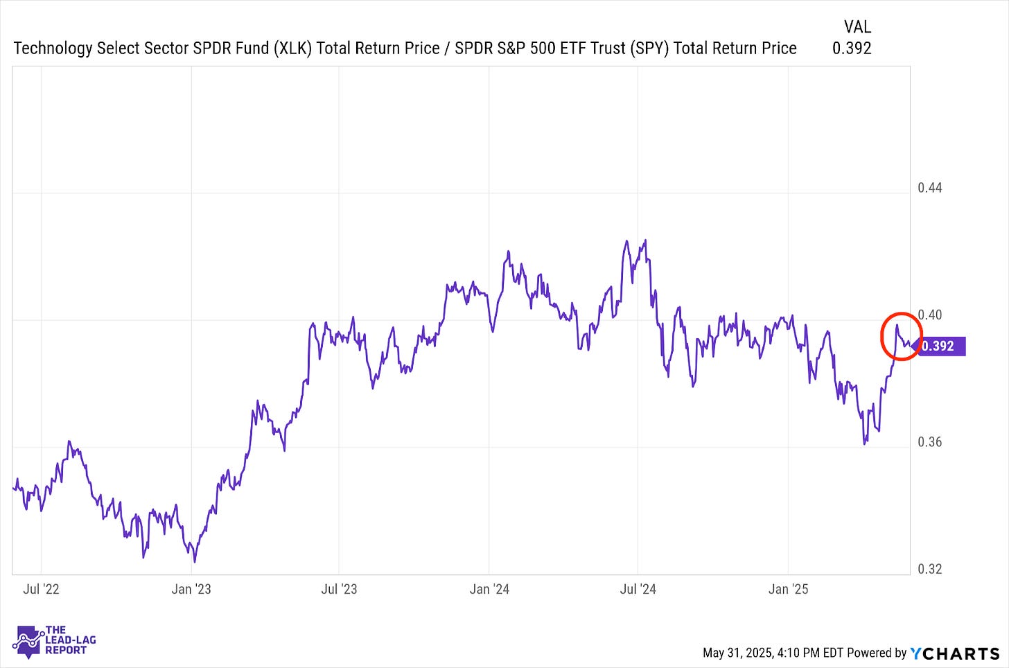 The volatility in global trade war developments has cooled the growth stock rally that has led the market since Trump rolled back reciprocal tariffs. The fact that the market reacted pretty tamely to the starts & stops on tariffs could actually be a good thing for tech. This type of volatility has typically pushed investors away from growth & tech. A lack of interest in reacting could mean fewer investors looking to migrate away.