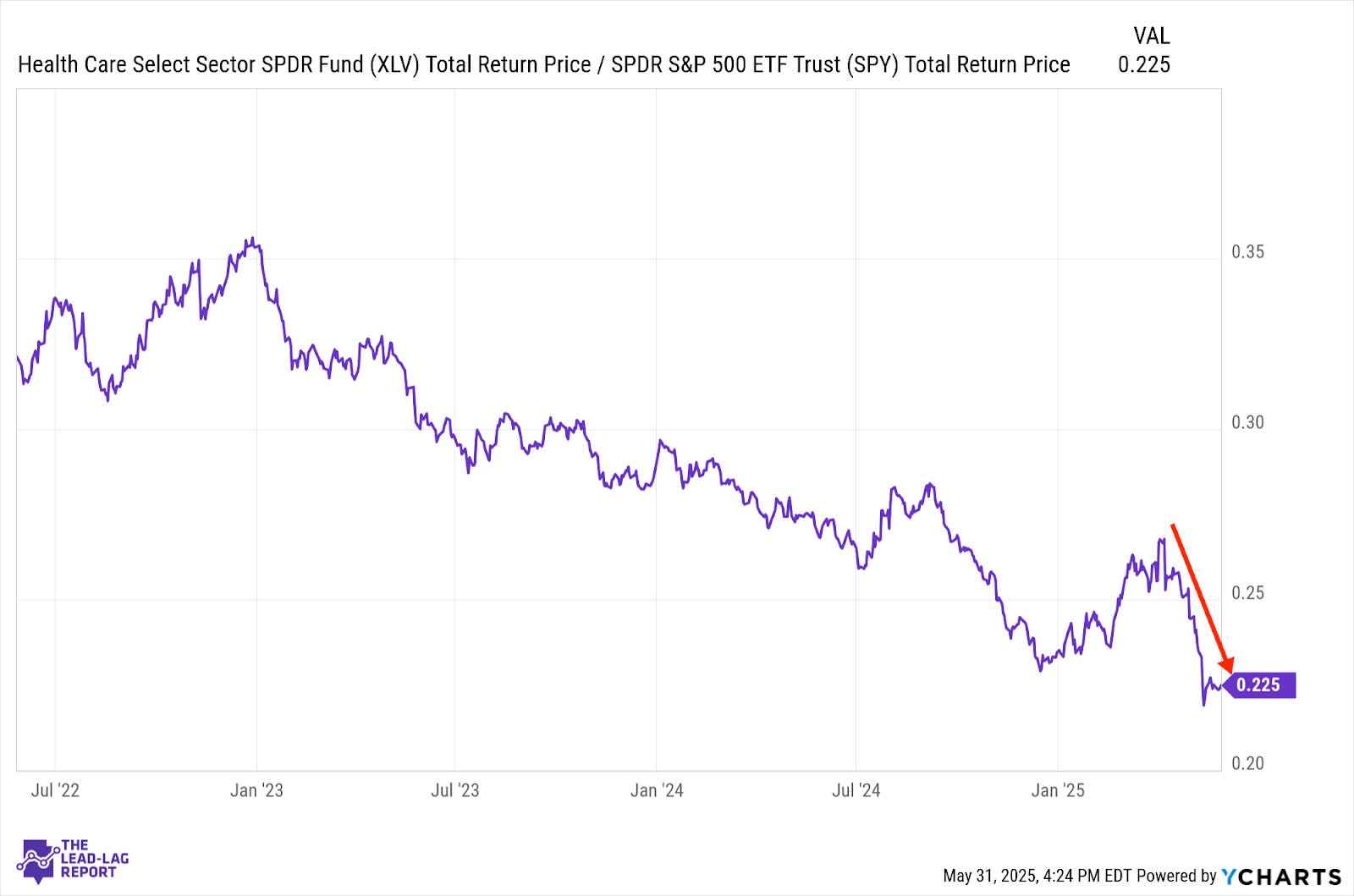 The healthcare sector looks like it’s reverted back to its old form, which is to say that it’s steadily lagging the S&P 500 again. Even in the environment over the past month or two where defensive sectors and themes have shown at least some life at times, healthcare seems to be the one area that’s consistently stuck in the mud. In a deregulation push, however, I could see this sector doing quite well.