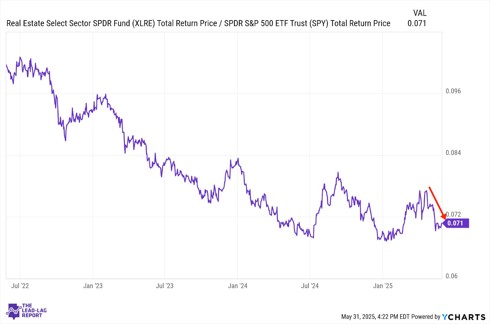Rate sensitive real estate is continuing to struggle with interest rates failing to move lower even after the easing of tariffs. REITs have worked fairly well as a risk-off asset throughout this cycle, but rate volatility and some counterintuitive behavior have caused some inconsistent performance this year. The hard data on housing is still holding up, but the commercial side is still experiencing its share of struggles.