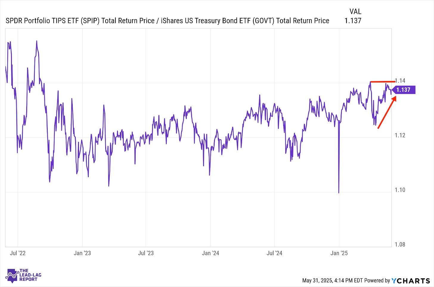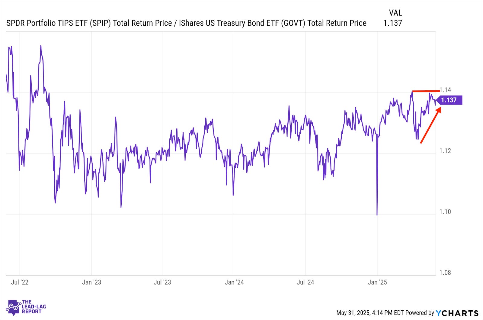 Inflation has taken a bit of a step out of the spotlight lately with all of the recent trade war machinations. We still don’t have a really good sense of where inflation might head given that it will be heavily dependent on tariffs. TIPS have been doing better in recent weeks in anticipation of potential trouble ahead, but still not to the point of signaling a major shift.