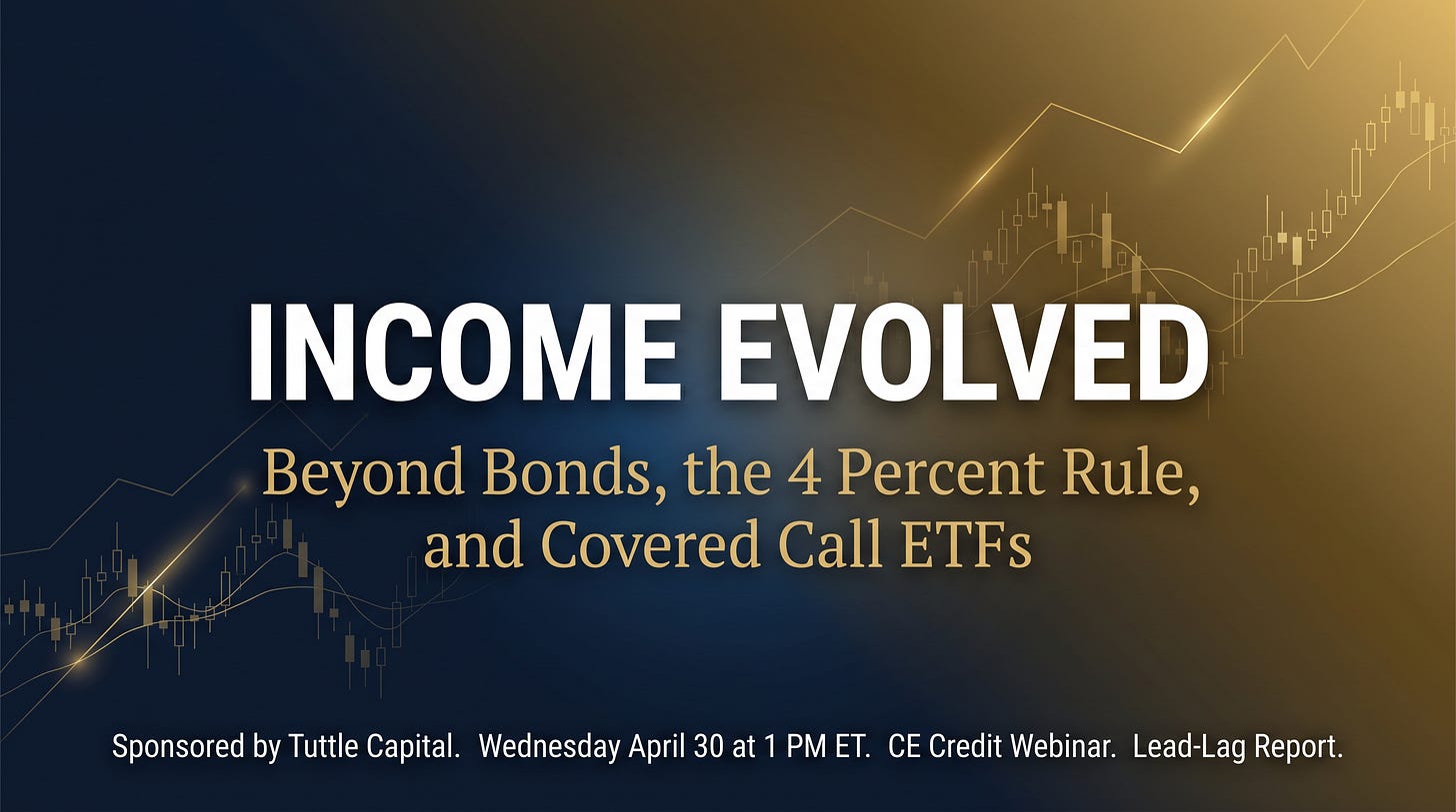 I’m hosting a free CE credit webinar on **Wednesday, April 30 at 1 PM ET** with the team at Tuttle Capital Management ($4B AUM ETF issuer, as of April 2026) where we’ll cover what actually works for income today.