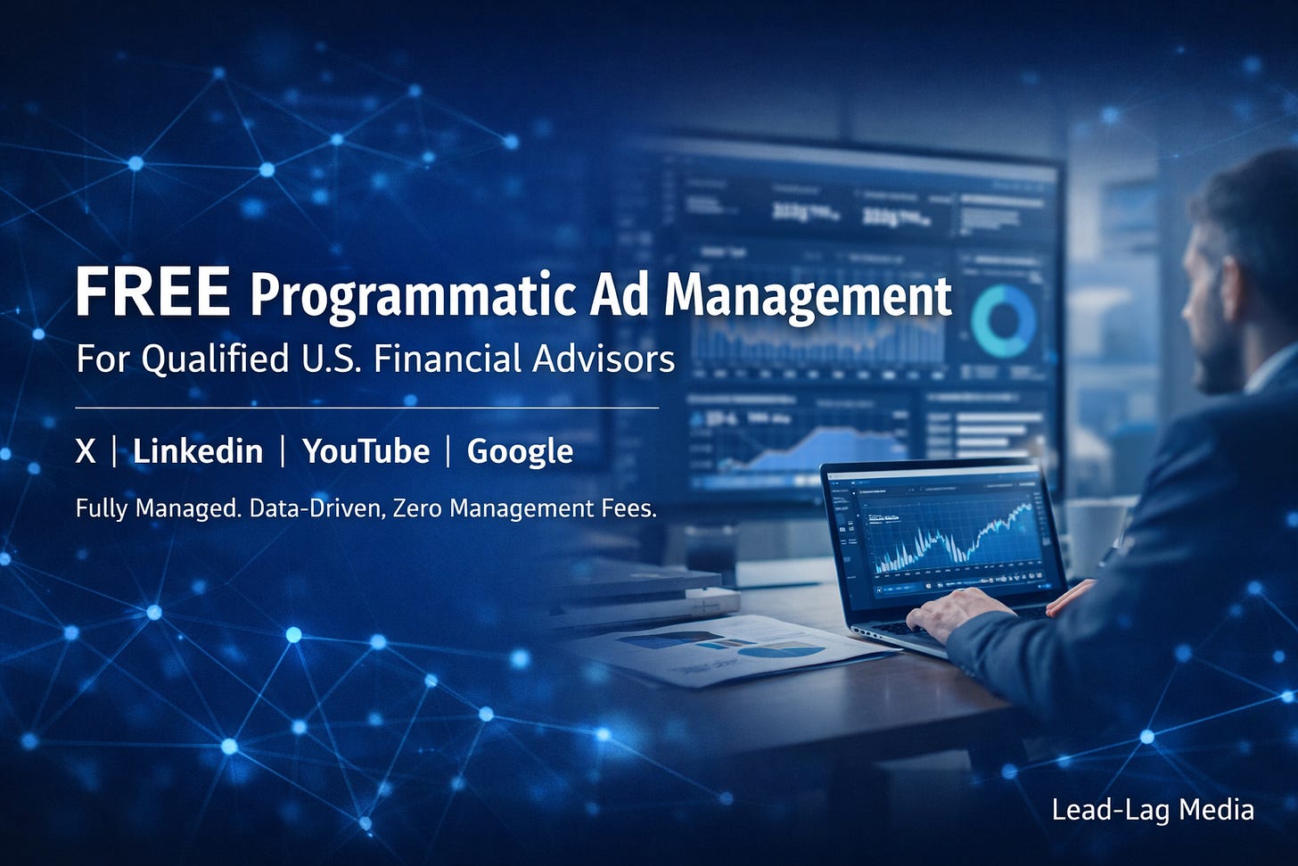 Today we’re announcing a new, specific offer for qualified U.S.-based financial advisors: Lead-Lag Media will provide free programmatic ad management across X, LinkedIn, YouTube, and Google.
