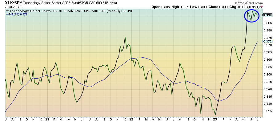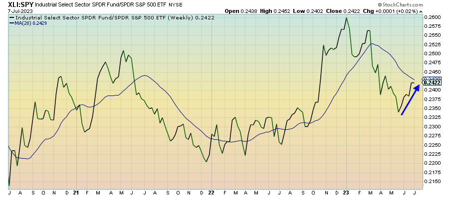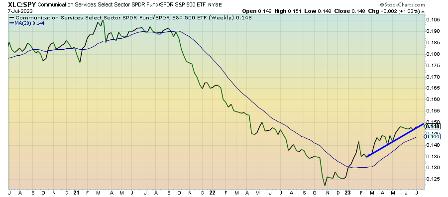 Like tech, communication services seems to be leveling off here, although the longer-term uptrend hasn’t been broken yet. Facebook could find a new source of investor enthusiasm if Threads works out similar to how NVIDIA did earlier this year. Nothing seems to be cracking short-term conditions supporting risk assets and that could keep this sector supported until we see a significant change.