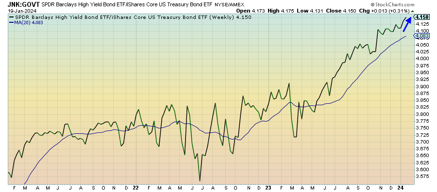 Below is an assessment of the performance of some of the most important sectors and asset classes relative to each other with an interpretation of what underlying market dynamics may be signaling about the future direction of risk-taking by investors. The below charts are all price ratios which show the underlying trend of the numerator relative to the denominator. A rising price ratio means the numerator is outperforming (up more/down less) the denominator. A falling price ratio means underperformance.