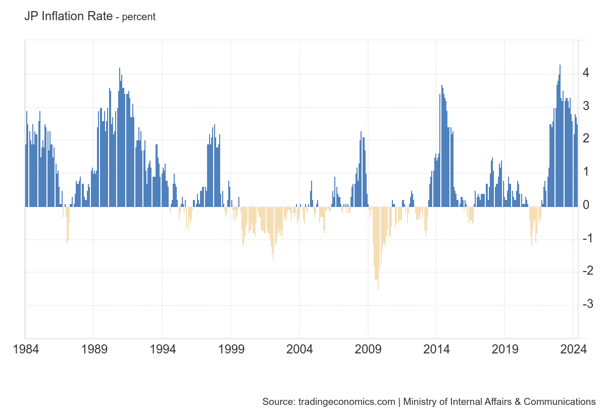 Over the past 40 years, the Japanese economy has only been able to sustain 2% for short periods of time (and has struggled with outright deflation just as frequently). Today, the inflation rate has remained above 2% for two straight years, the longest such stretch since the early 1990s.