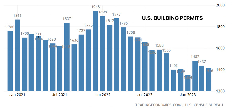 The chart for U.S. building permits looks almost identical to that of existing home sales and probably for the same reasons. People considering breaking ground on new homes are going to be less inclined to move forward if the cost of doing so is going to be much higher than anticipated. We know that affordability and declining consumer sentiment have been issues in this cycle, which resulted in the percentage of new home contracts getting canceled was skyrocketing. This is a pretty good reflection of that.