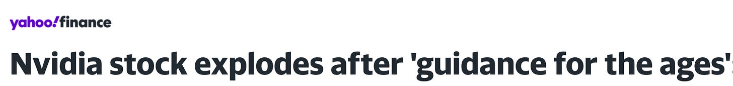 I don’t want to turn this into a referendum on NVIDIA because that’s not what I’m interested in, but this whole episode is an excellent reminder of why long-term narratives often experience many short-term distractions along the way. We’ve got several markers already suggesting that risks are still elevated and the possibility of both recession and correction are high, whether that’s manufacturing, jobless claims, housing, commercial real estate, corporate credit or, of course, lumber prices. NVIDIA’s results take the focus off the long-term macroeconomic picture and have the ability to get investors to bite on the latest and greatest (and expensive) high fliers.