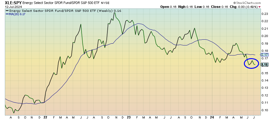 Crude oil prices are taking a pause as are energy stocks for the time being. This group didn’t participate in the cyclical renaissance last week, which may be more of a statement on where markets think consumer behavior is headed. Energy demand usually peaks in the summer travel season and cools later in the year, but we could see that happen sooner and more swiftly this year if current economic trends continue.