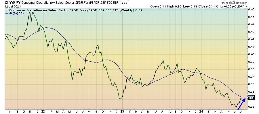Even though the markets widely rejected growth stocks last week, discretionary stocks are still managing to drive higher. Part of this is the ratio bouncing off of recent lows, but I’m not sure there’s much strength in this move. All of the signs are pointing to stress in consumer behavior and that’s a trend I see unlikely to reverse in the near future.