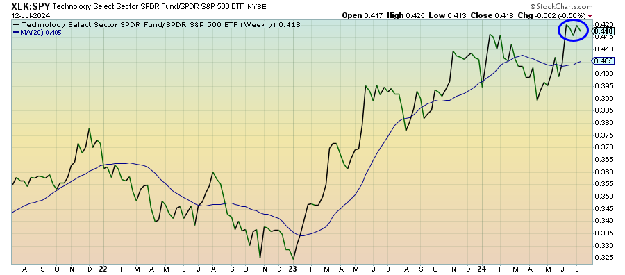 Below is an assessment of the performance of some of the most important sectors and asset classes relative to each other with an interpretation of what underlying market dynamics may be signaling about the future direction of risk-taking by investors. The below charts are all price ratios which show the underlying trend of the numerator relative to the denominator. A rising price ratio means the numerator is outperforming (up more/down less) the denominator. A falling price ratio means underperformance.