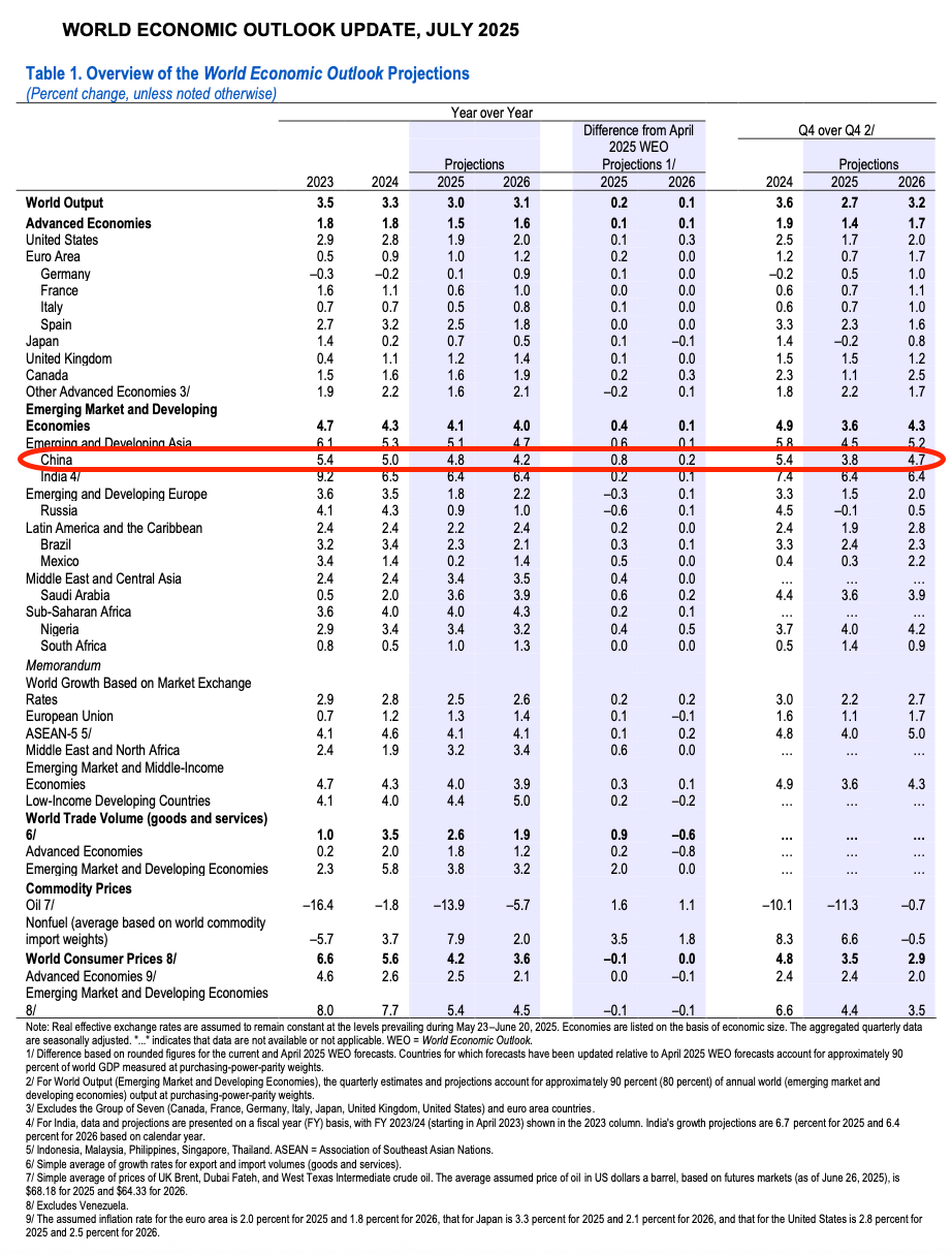 In its July 2025 update, the IMF raised its estimate of 2025 GDP growth for China from 4% to 4.8%, bringing forecasts back closer to the 5% area that the country has been accustomed to.