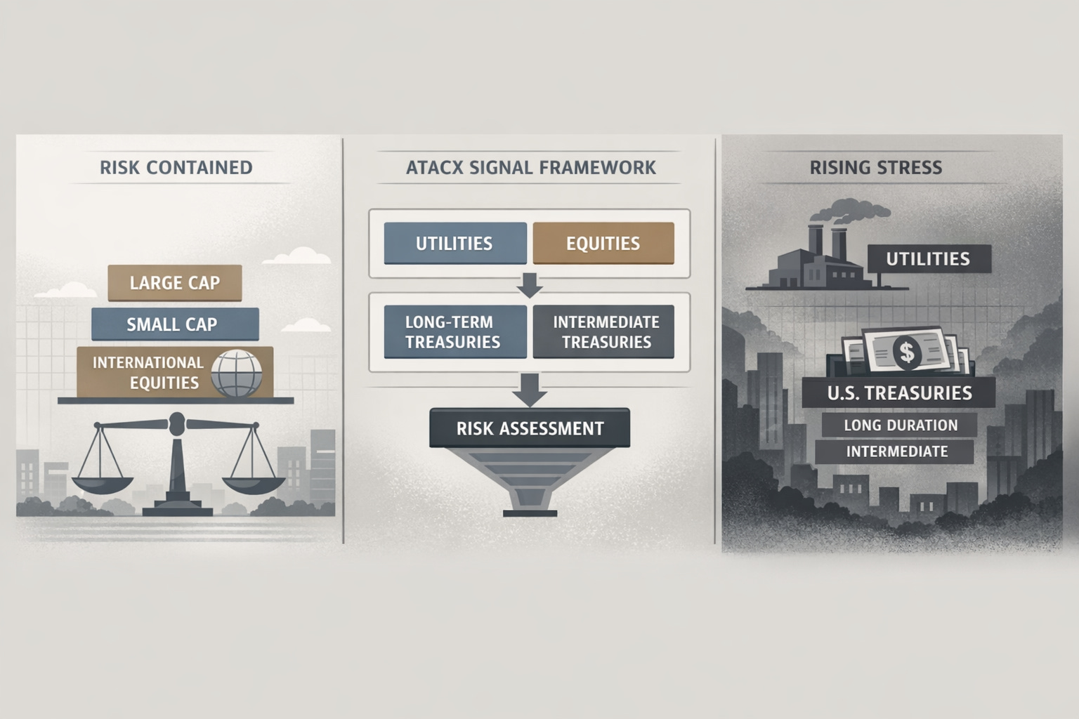 To understand how this rotation affects ATACX, it helps to clarify how the fund determines positioning. ATACX does not attempt to forecast which factor or sector will lead next. Instead, it seeks to identify changes in market conditions that have historically preceded shifts in volatility. When signals point to rising stress, the portfolio moves defensively. When risk appears contained, it allocates to equities.⁵