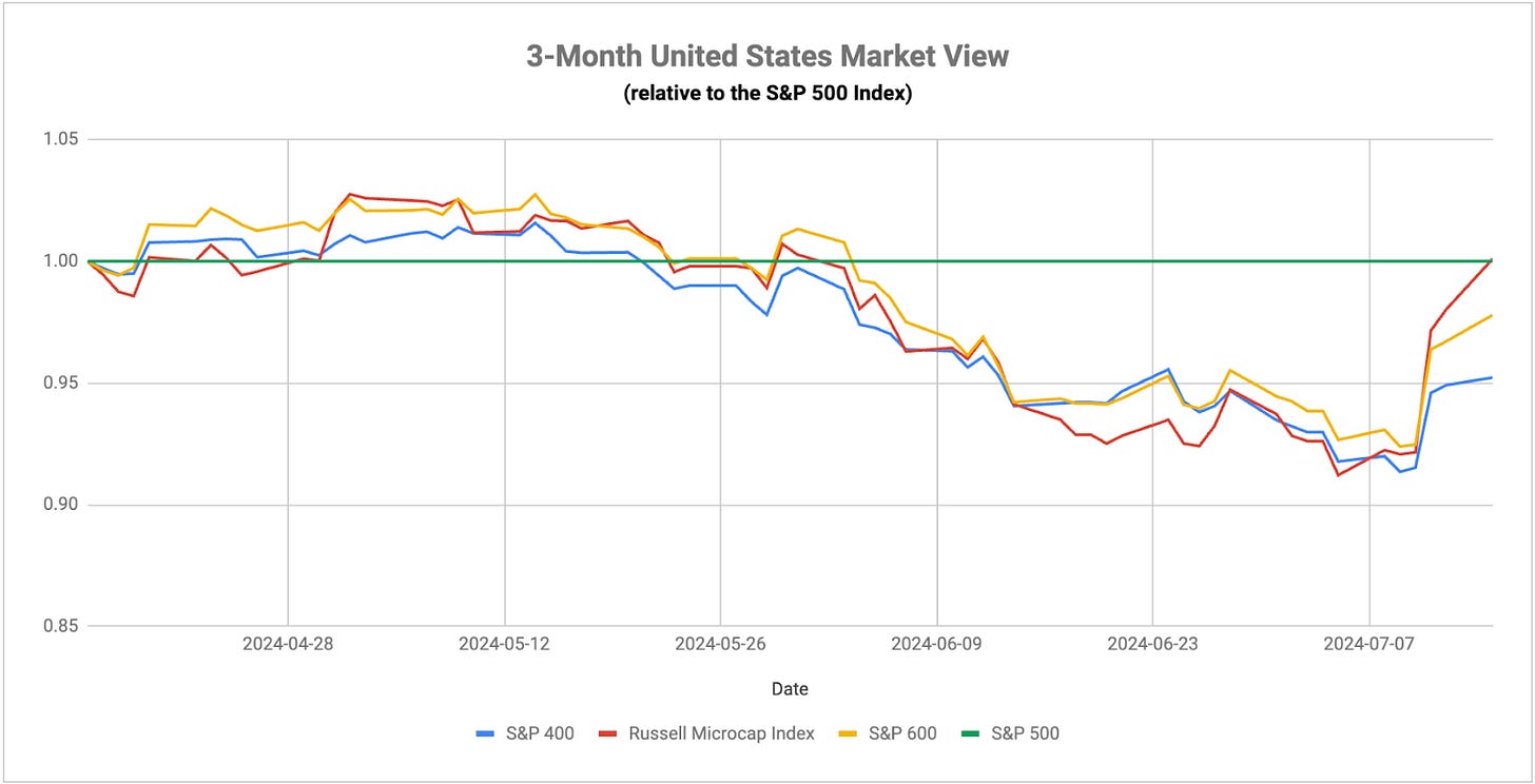 Following the second consecutive monthly inflation report that showed prices moderating, small-caps have overtaken mega-cap growth as the unquestioned market leader. I think there are two ways to interpret this. Very broadly, a rotation from large-caps into small-caps could be viewed as a bullish sign since investors are moving into a traditionally riskier asset class. That could ultimately prove to be the case. After all, long-term Treasuries really aren’t rallying at all and that’s something you’d expect to see if investors are really taking risk off the table. Plus, from a historical perspective, sudden and sharp moves like this where small-caps have outperformed large-caps by a wide margin have coincided with market bottoms, not the beginning of new bear markets.