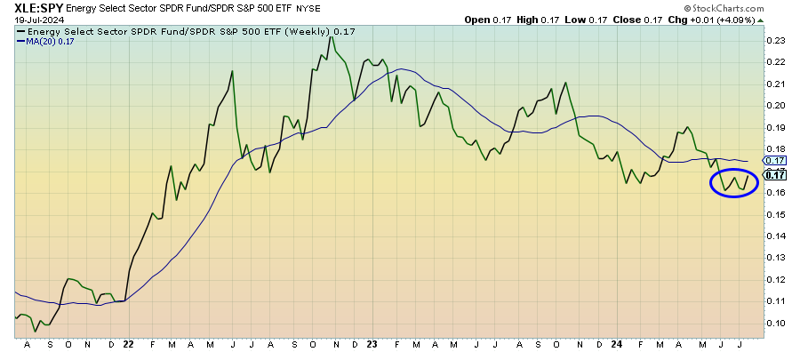 Energy stocks haven’t had quite as strong of a rally as other cyclicals over the past couple weeks, but oil prices have also been trending lower on growth concerns. Japan lowering its 2024 GDP estimate last week didn’t help matters, but this week’s U.S. first GDP reading for Q2 could help correct that. Lower output quotas seem to be stemming some of the bleeding, but growth rates are going to be the big driver.