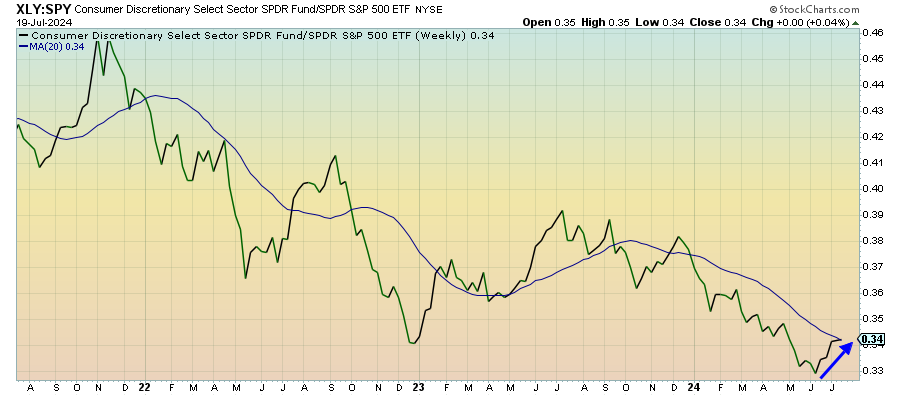 Not all growth sectors are lagging here and this one has actually been having a pretty good run over the past month. This could just be an oversold bounce following a year-long lagging trend because I don’t see much in the macro backdrop to this sector that is encouraging. If consumer spending can hold up, there’s a chance this short-term trend can continue, but it’s looking less likely over the longer-term.