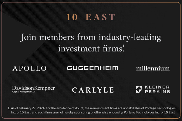 10 East is where founders, executives, and portfolio managers from industry-leading firms diversify their personal portfolios.