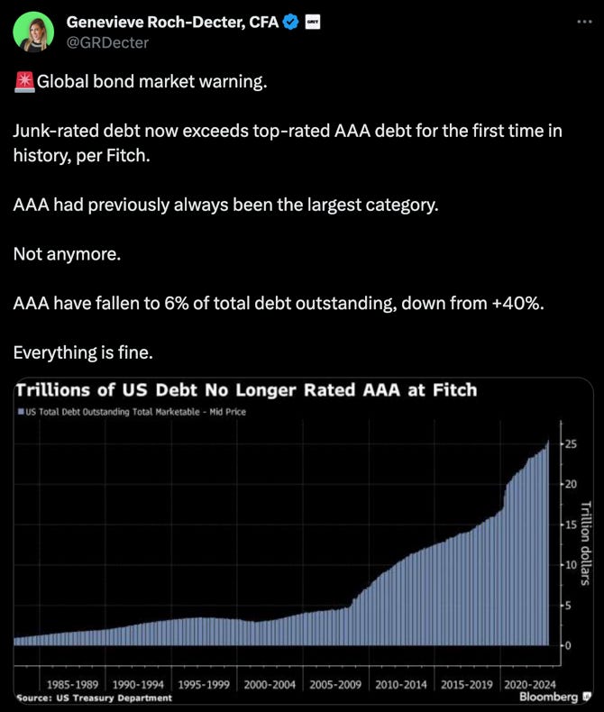 The fact that there’s more junk-rated debt out there today than AAA-rated debt seems a little concerning. The big catalyst, of course, is Fitch’s downgrade of U.S. government debt from AAA to AA+, but that shouldn’t underscore the larger trend in the bond market. Years of debt accumulation at ultra-low interest rates have swollen the number of zombie companies out there to unsustainable levels, companies that likely would have had trouble surviving under a normal rate environment. Now we’re likely entering an era of prolonged higher interest rates that is going to drive a lot of these names into bankruptcy.