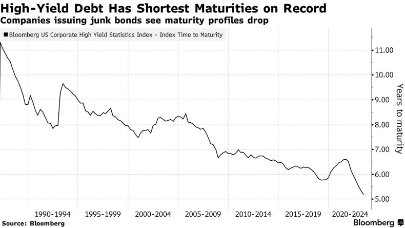 As interest rates have soared, the term to maturity has shrunk. Three decades ago, junk bonds averaged 9 years until maturity. Today, that number is approaching just 5 years. I’ve mentioned repeatedly the risks that are coming from this mountain of debt maturing and needing to be refinanced at much higher rates. This, in fact, is probably going to be one of the biggest factors that ushers in a major credit event. As maturities drop, the fuse to that ticking time bomb gets shorter.