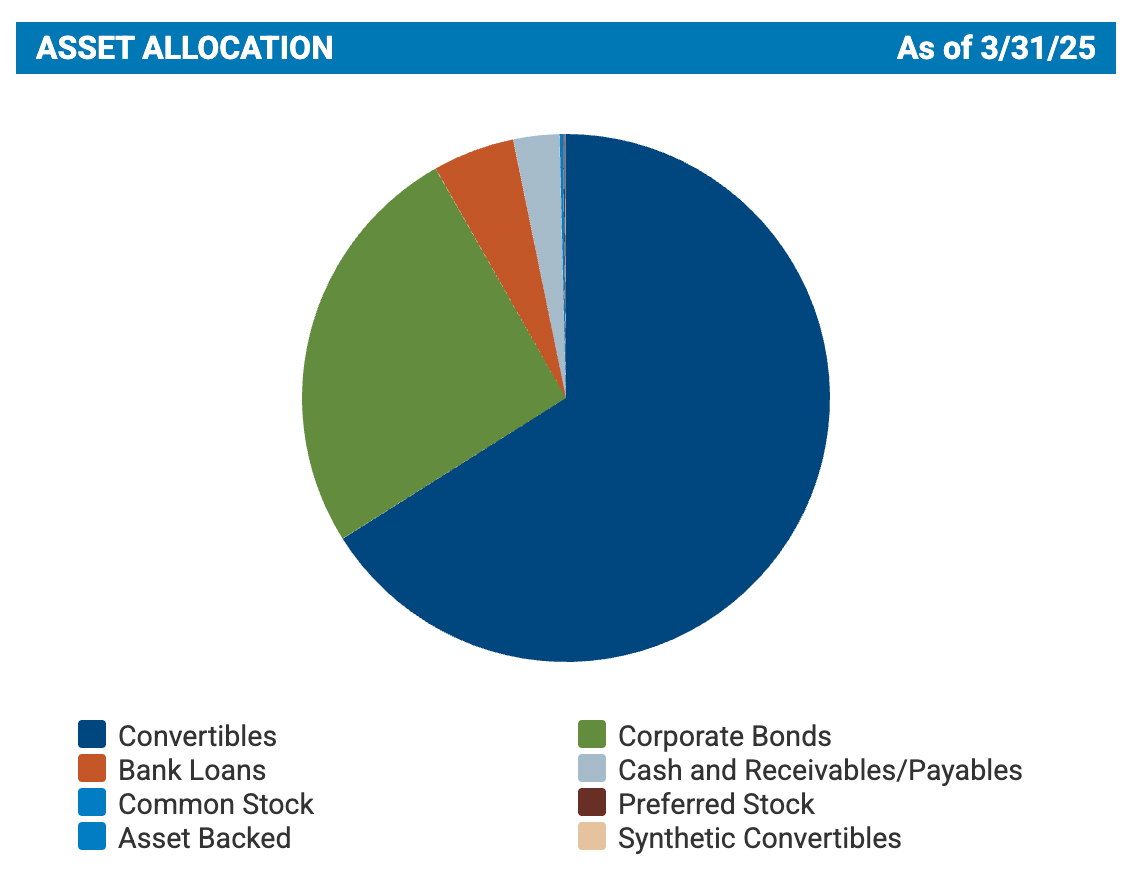 Unfortunately, the allocation to senior loans and preferreds is minimal at best. About ⅔ of the portfolio is pure convertibles with most of the remainder going to corporate bonds. Convertibles will obviously be the driver of performance here, but there’s enough variety outside of that in the allocation that interest rate risk could become an issue.