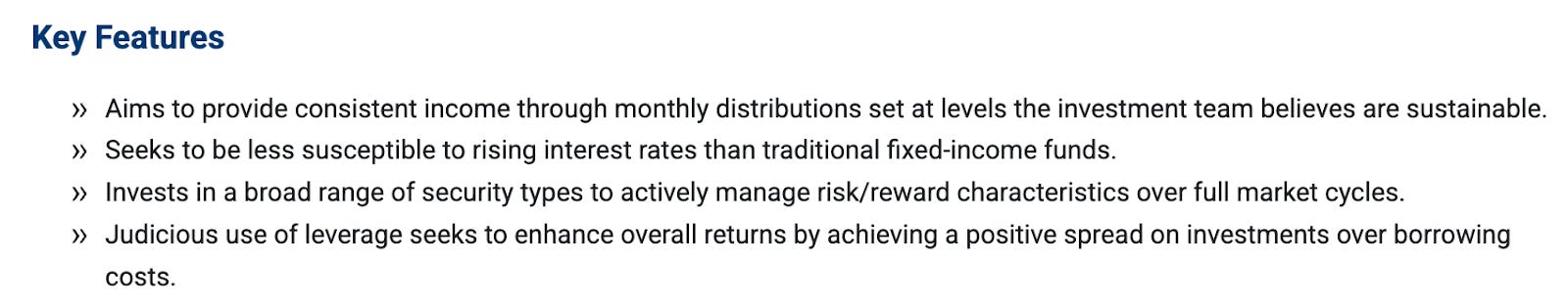 My immediate concern is that CHY currently has a nearly 40% leverage overlay. That’s really high and exposes shareholders to significant downside risk if conditions turn south (not to mention the cost of implementing that leverage right now). It helps push the yield into the double digits, which is probably the end goal, but total return could potentially be a problem shorter-term. The inclusion of senior loans and preferreds, however, could help balance out some of that risk.