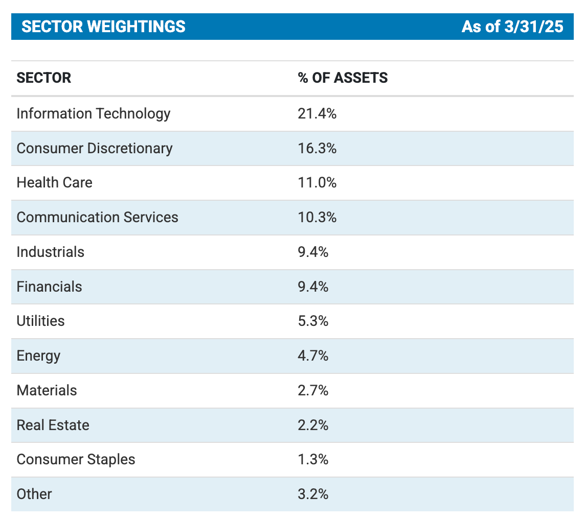 CHY has a sector allocation not all that dissimilar from that of the S&P 500, but there are some differences. It’s underweight tech & financials and overweight discretionary and some of the smaller sector allocations. Overall, it has more of a value lean sector-wise, but not so much that you have a meaningful deviation from the S&P 500.